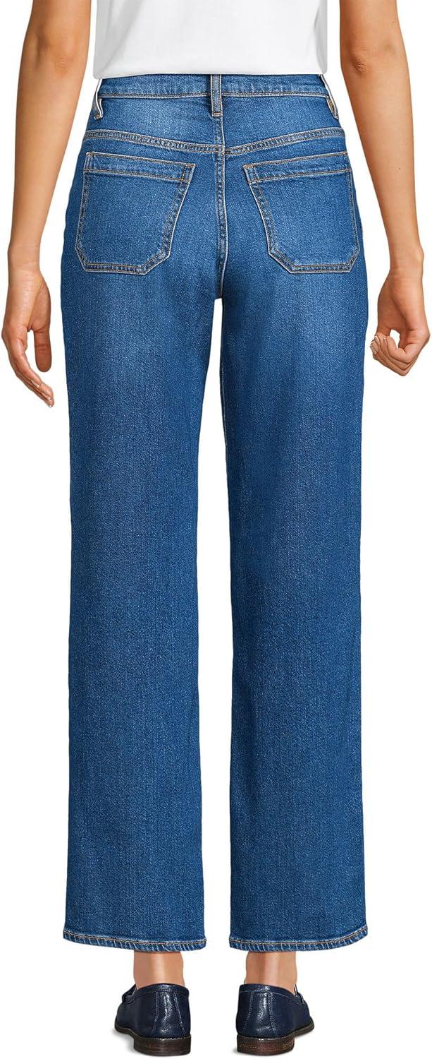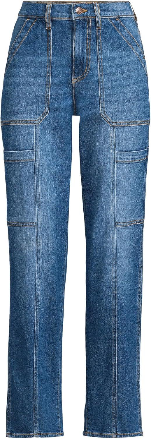 Lands’ End Women’s Denim High Rise Utility Cargo Ankle Jeans(Indigo Tide Blue)
