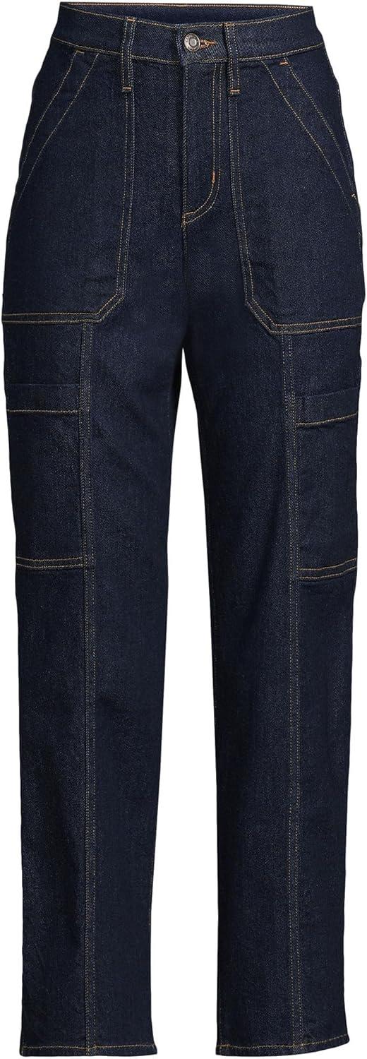 Lands’ End Women’s Denim High Rise Utility Cargo Ankle Jeans(River Rinse)