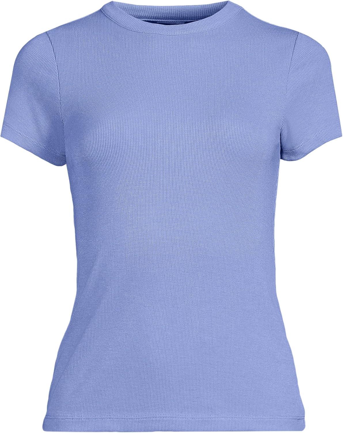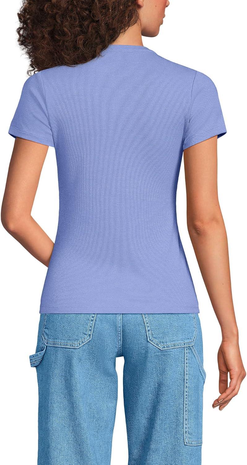 Lands’ End Women’s Drapey Rib Fitted Short Sleeve Mini T-Shirt(Light Periwinkle)