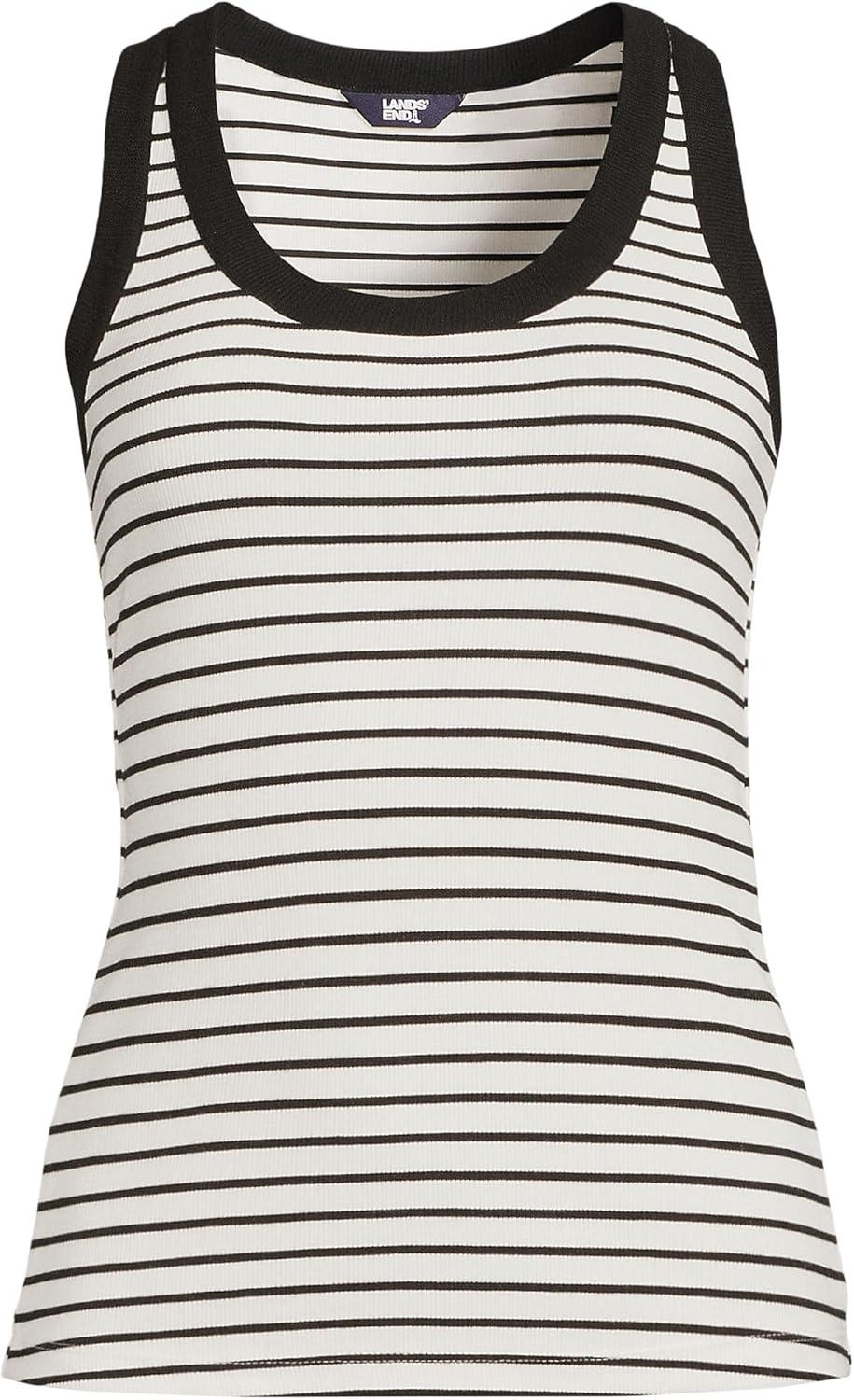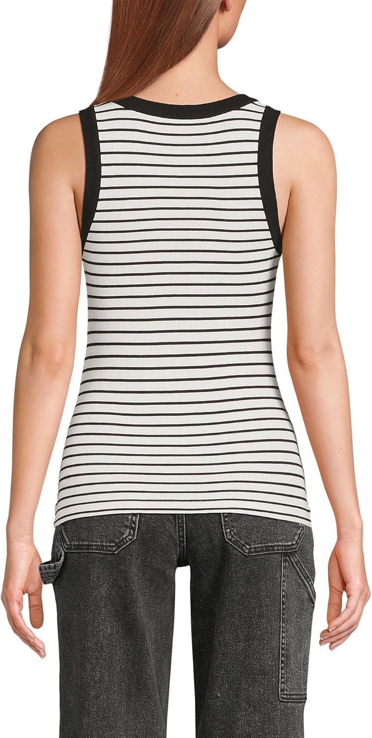 Lands’ End Women’s Drapey Rib Fitted Tank Top(Ivory/Black Stripe)