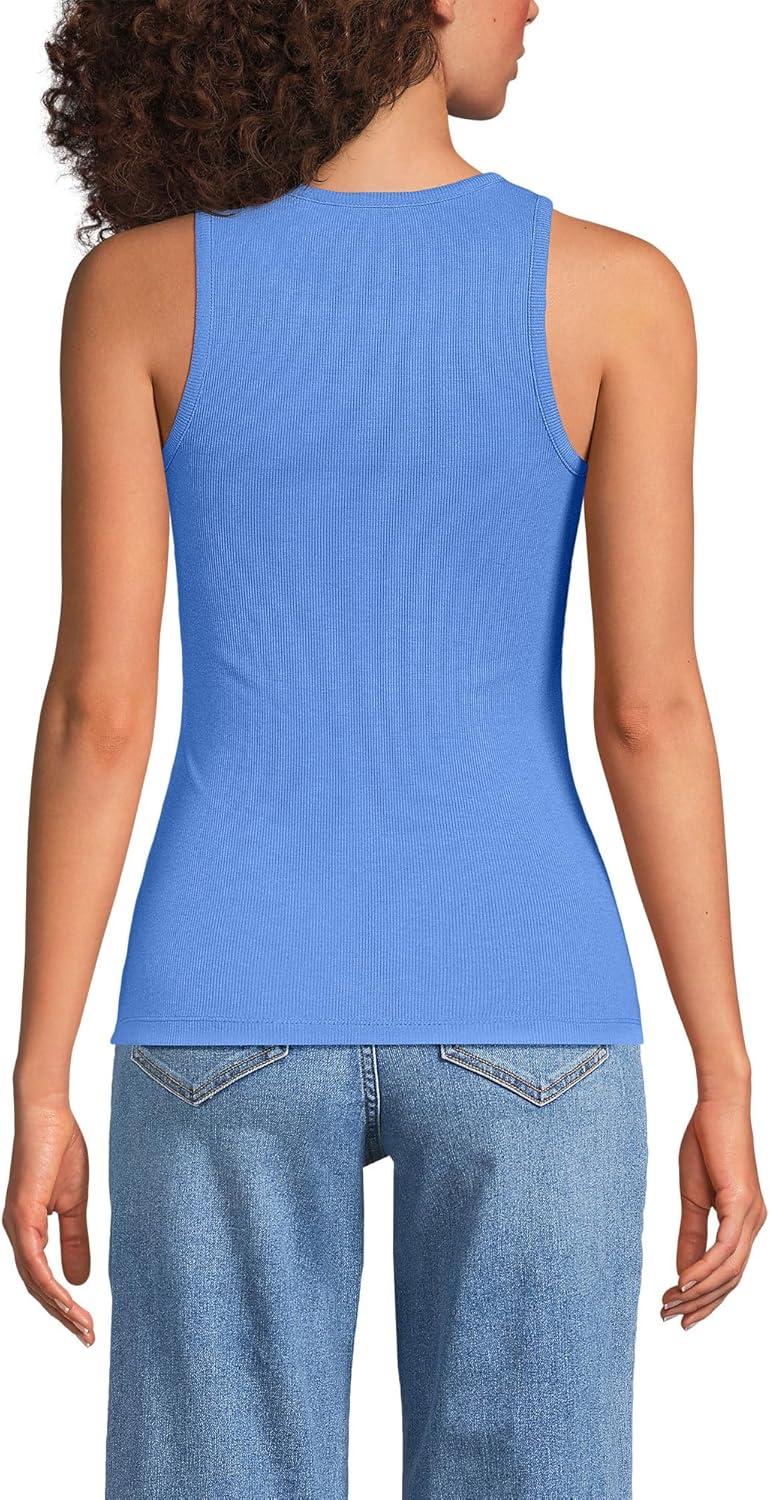 Lands’ End Women’s Drapey Rib Skimming Tank Top Shirt(Crisp Blue)