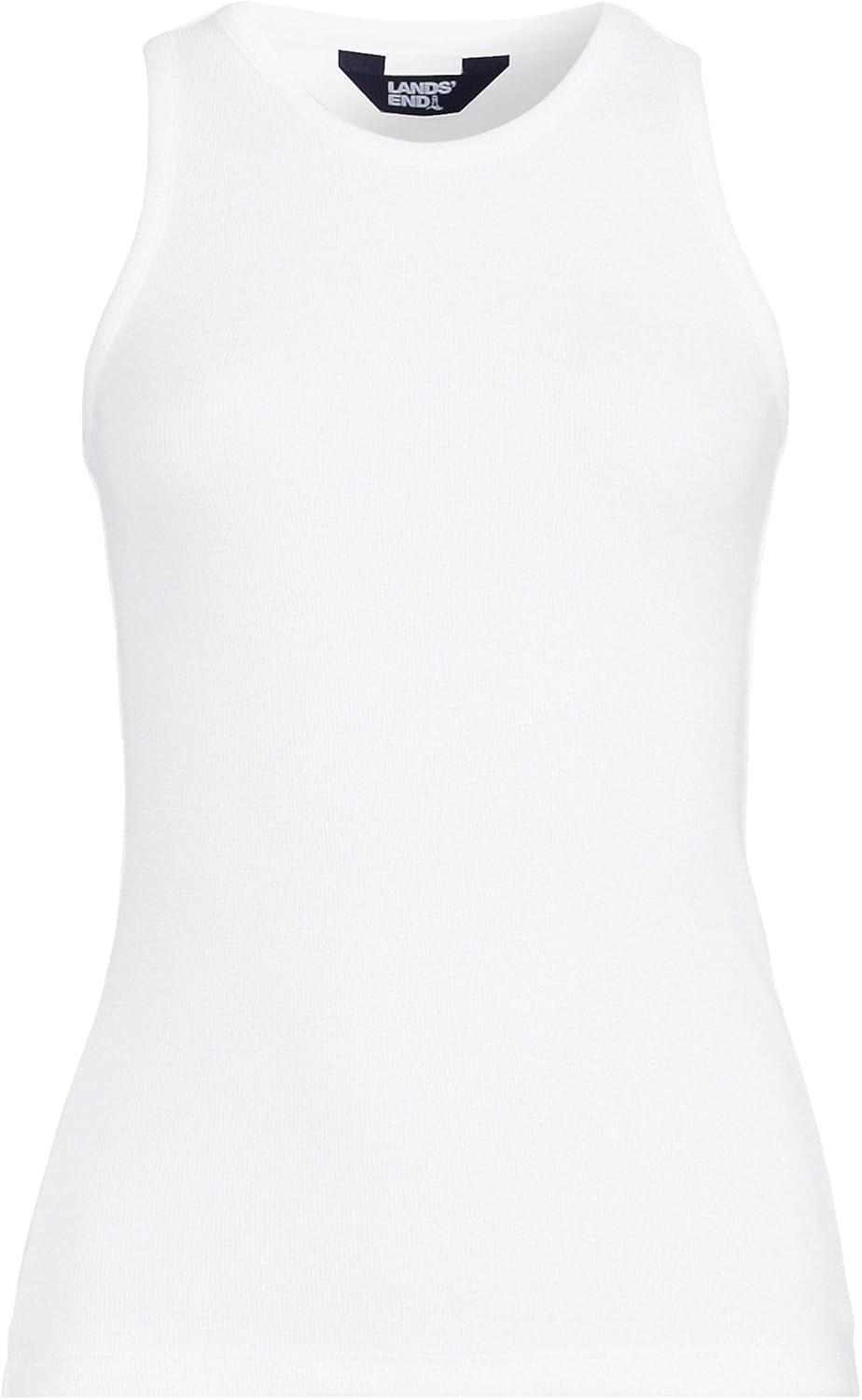 Lands’ End Women’s Drapey Rib Skimming Tank Top Shirt(White)