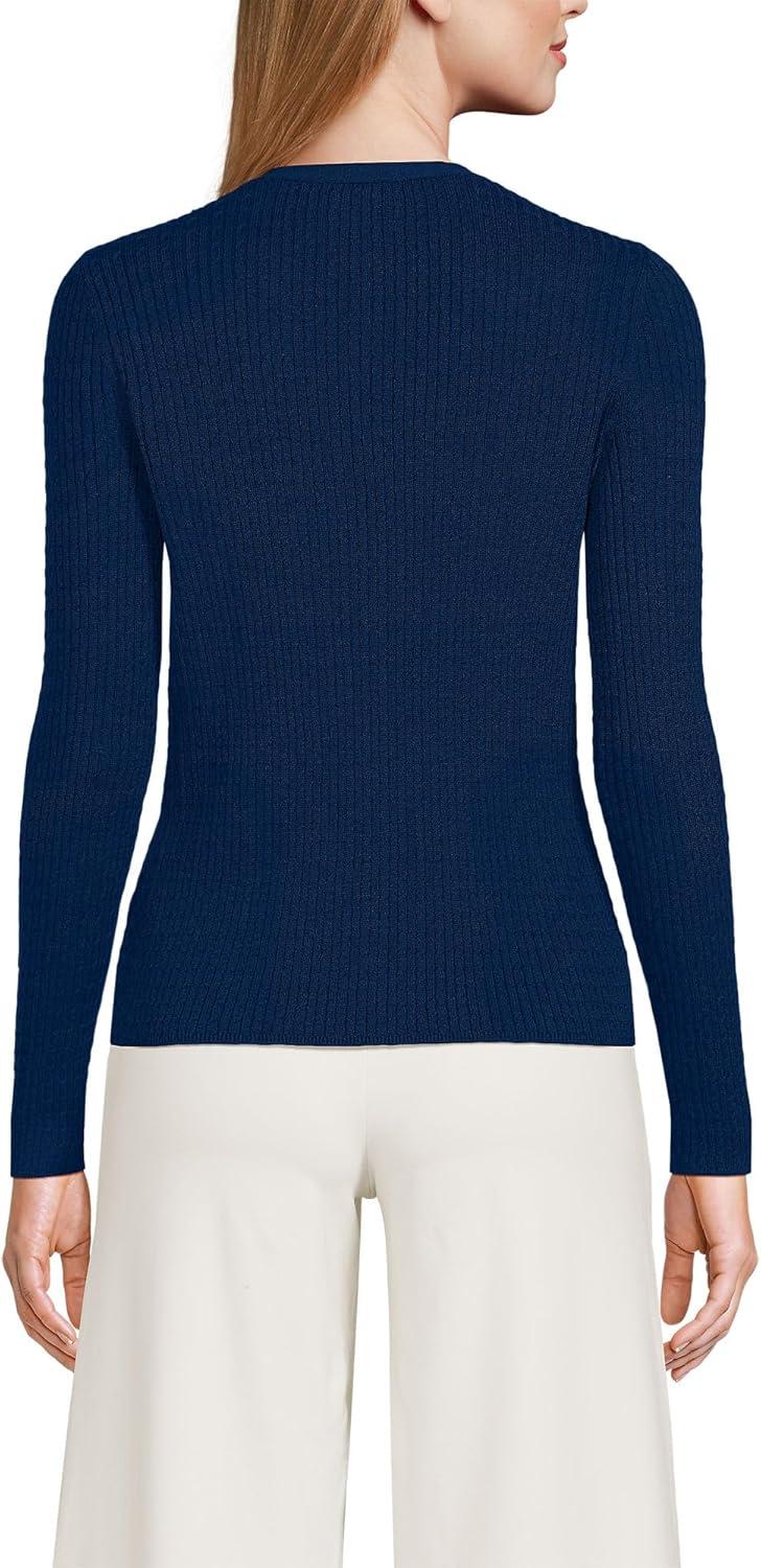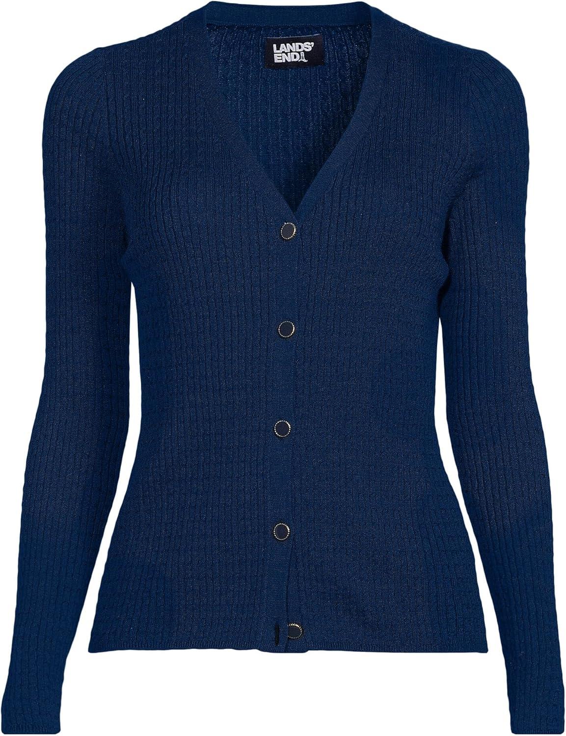 Lands’ End Women’s Drifter Baby Cable Vneck Cardigan Sweater(Deep Sea Navy)