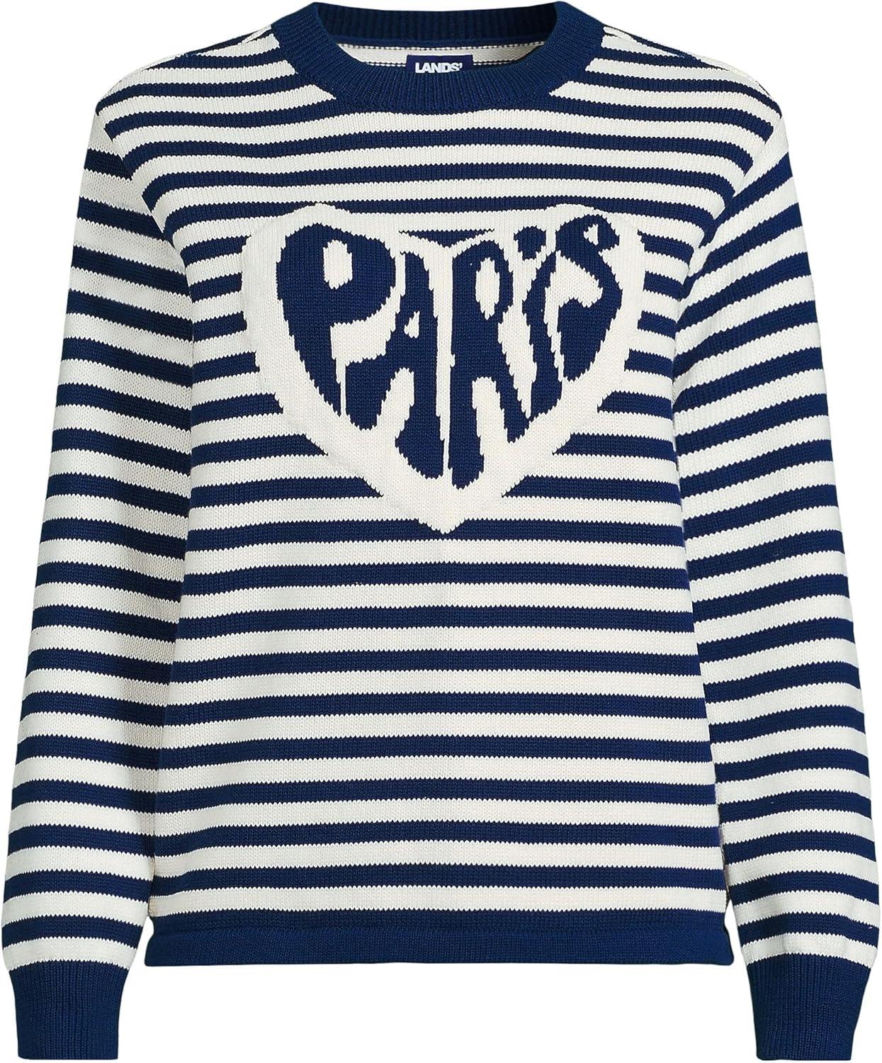 Lands’ End Women’s Drifter Jacquard Crew Neck Sweater(Paris Heart)