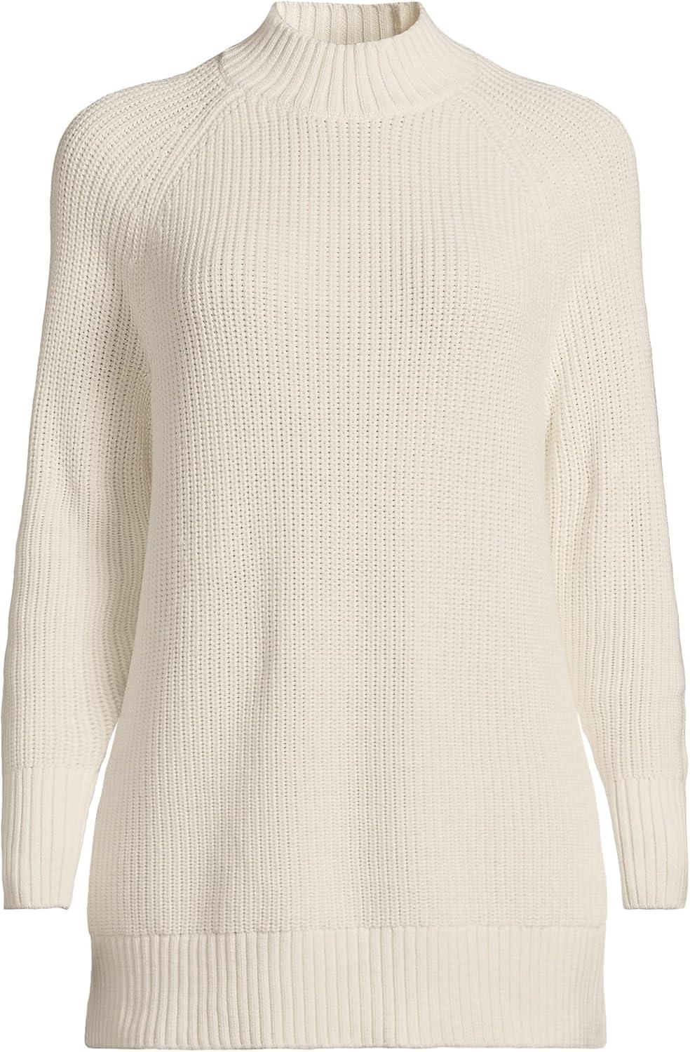 Lands’ End Women’s Drifter Shaker Easy Fit Mock Neck Sweater(Fresh Ivory)