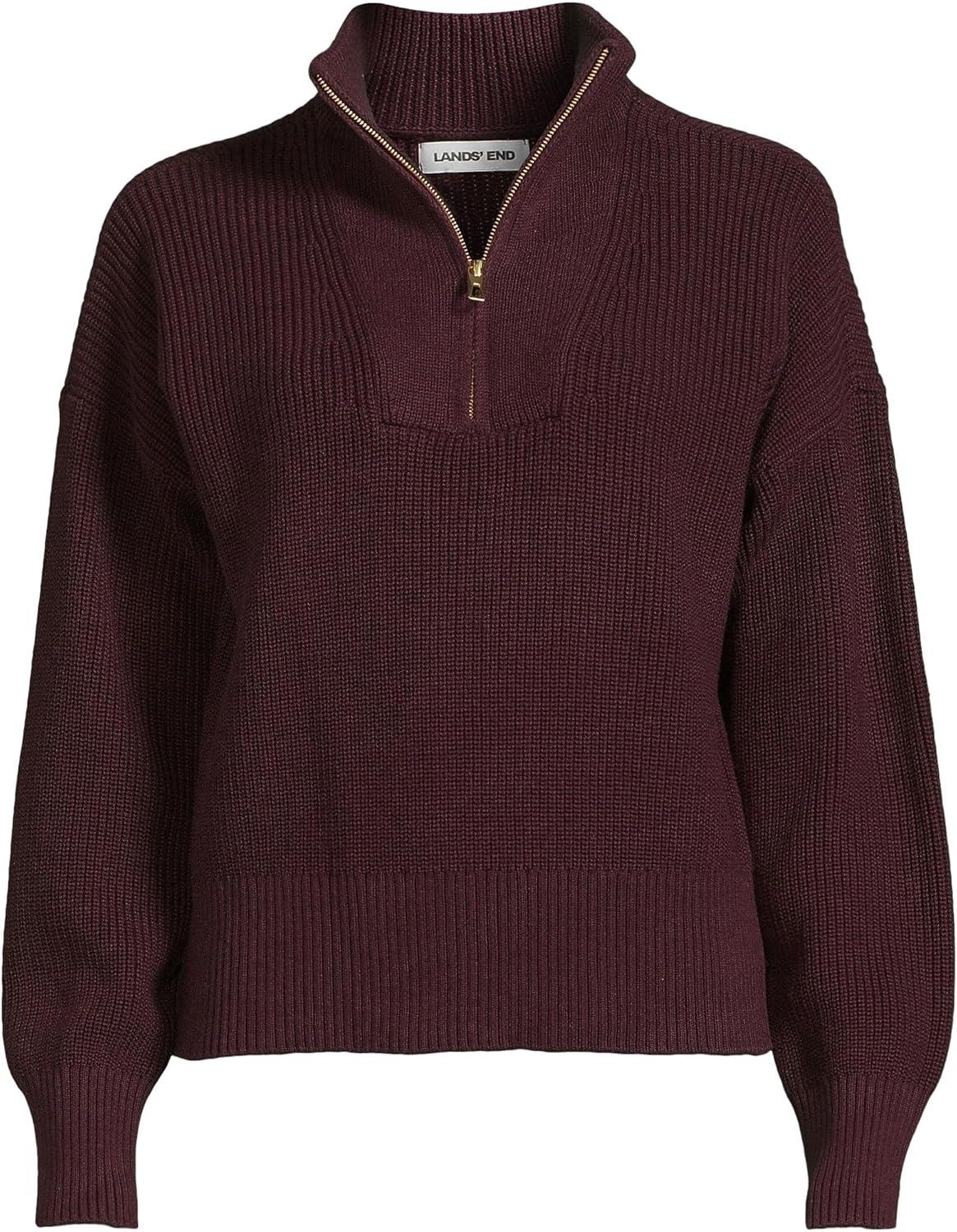 Lands’ End Women’s Drifter Shaker Wedge Quarter Zip Sweater(Aged Wine Heather)