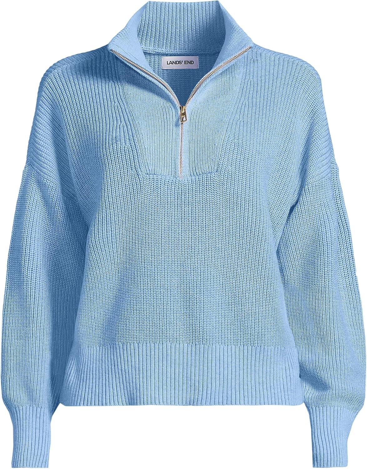 Lands’ End Women’s Drifter Shaker Wedge Quarter Zip Sweater(Light True Blue Heather)