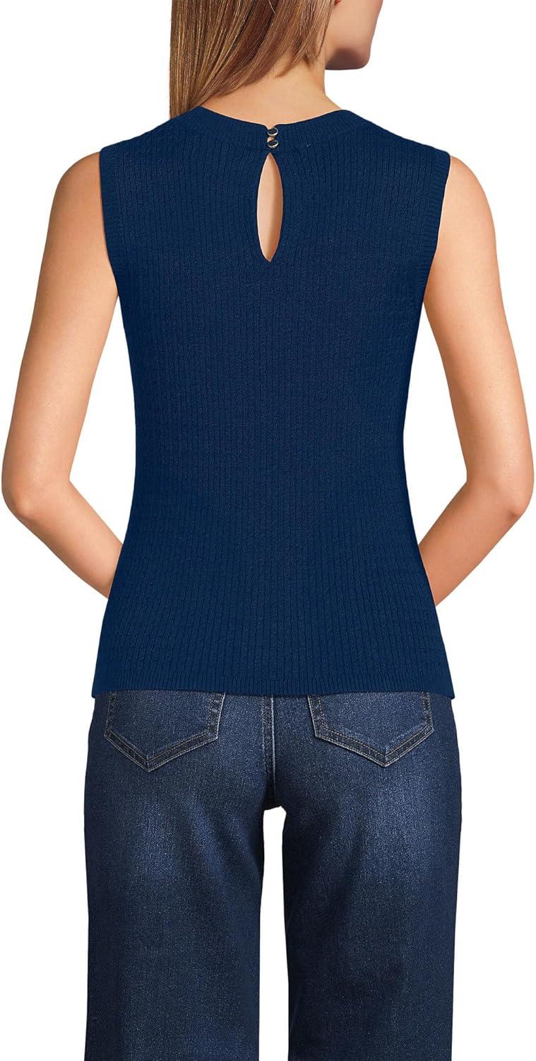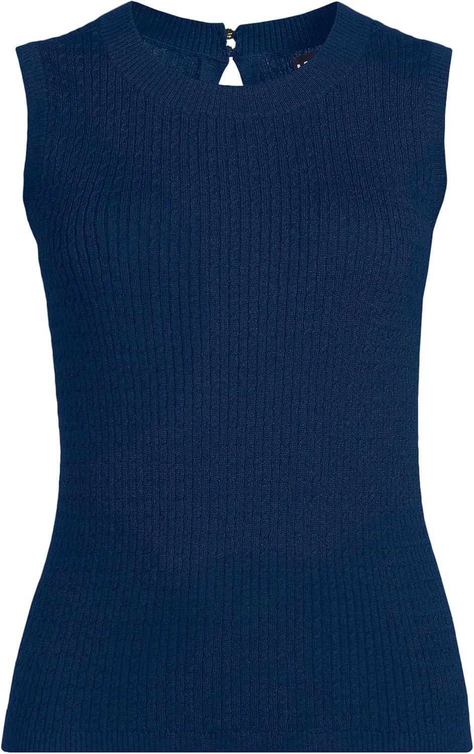 Lands’ End Women’s Fine Gauge Baby Cable Crew Neck Sleeveless Sweater(Deep Sea Navy)