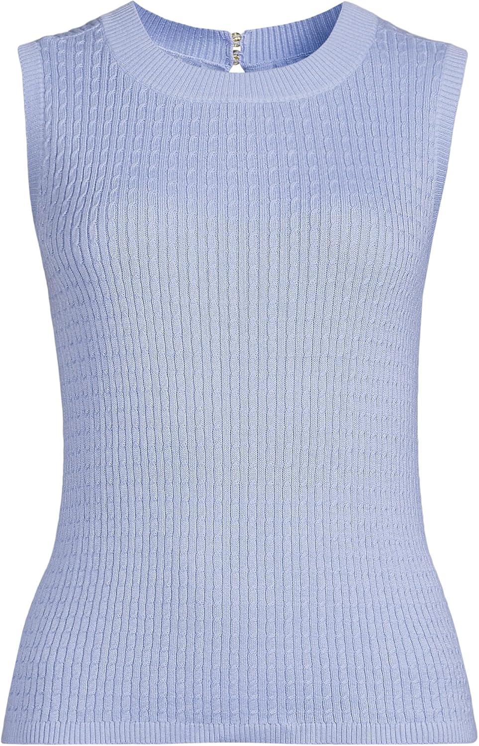 Lands’ End Women’s Fine Gauge Baby Cable Crew Neck Sleeveless Sweater(Light Periwinkle)