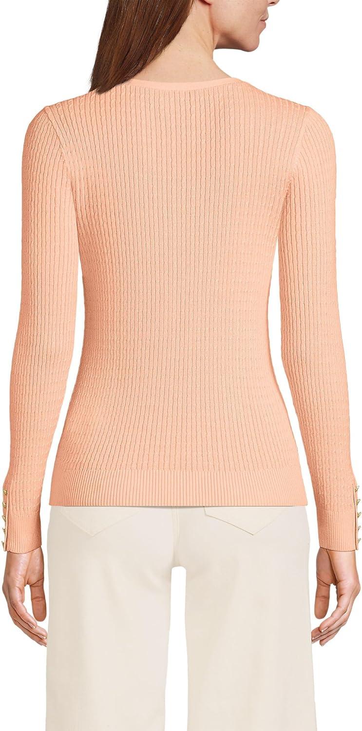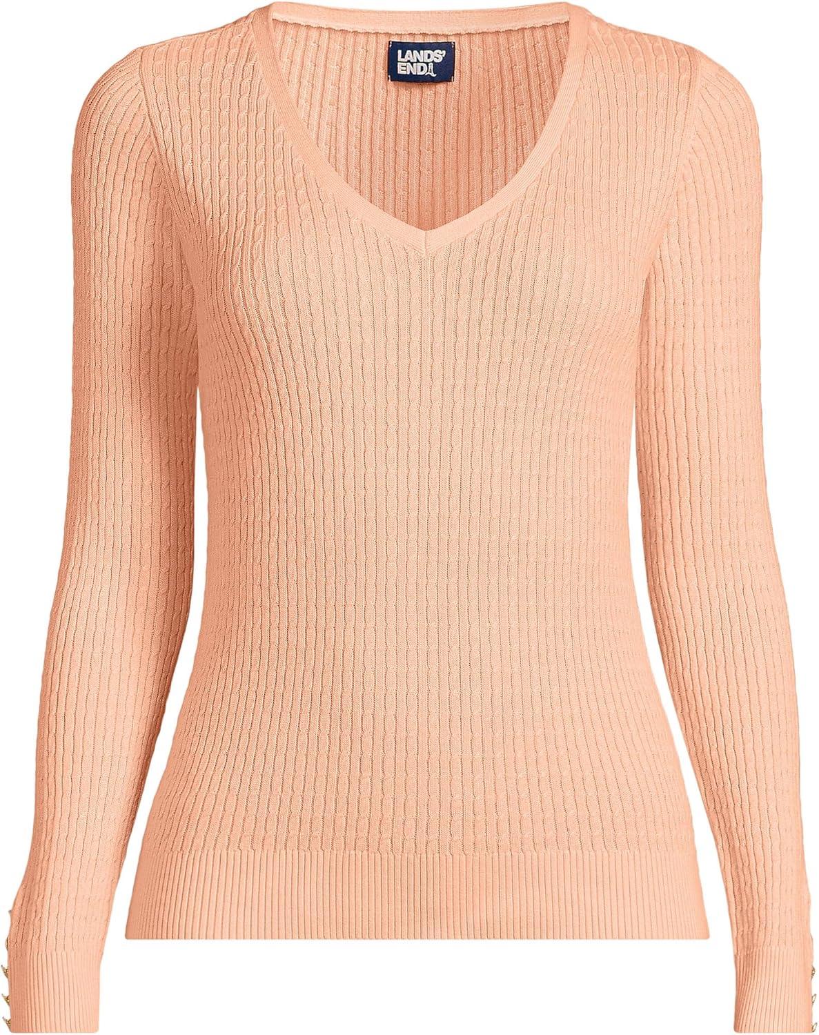 Lands’ End Women’s Fine Gauge Cotton Baby Cable Vneck Sweater(Peach Sorbet)