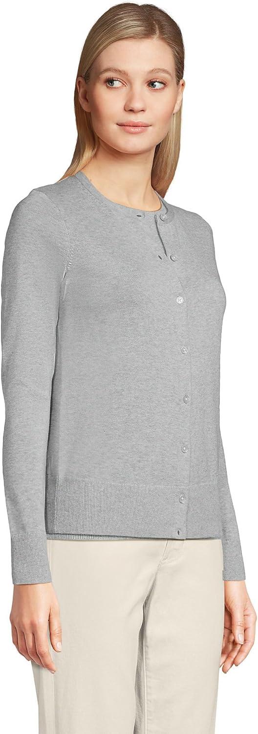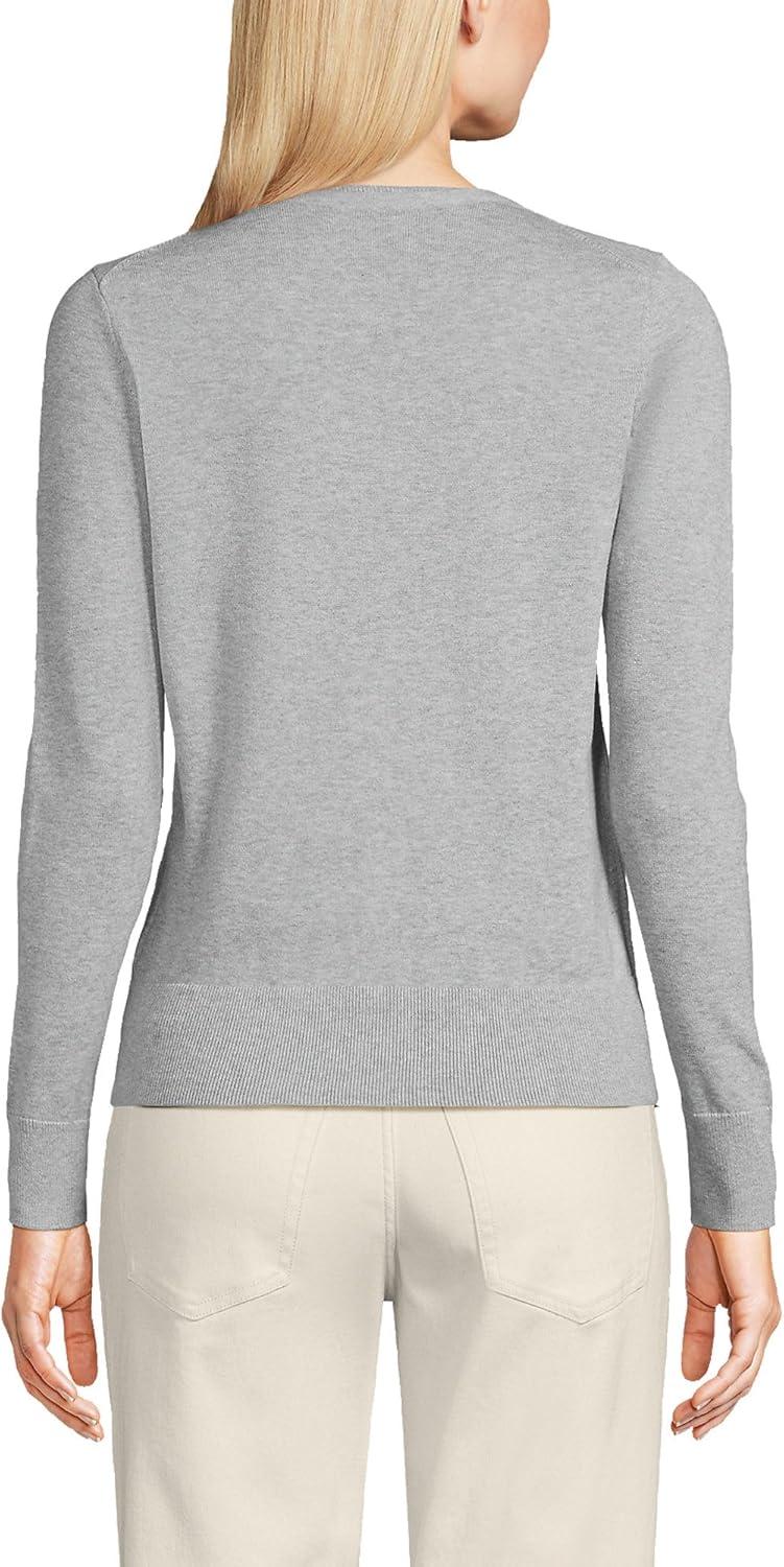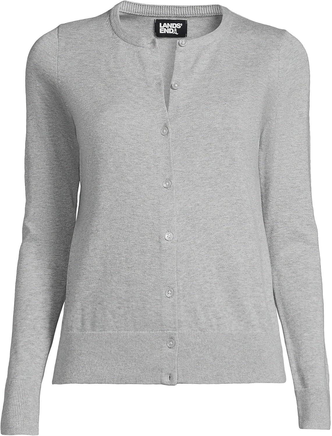 Lands’ End Women’s Fine Gauge Cotton Cardigan Sweater(Gray Heather)