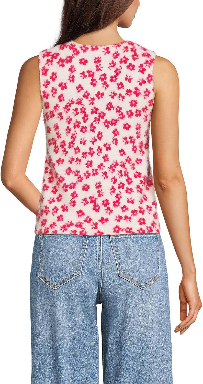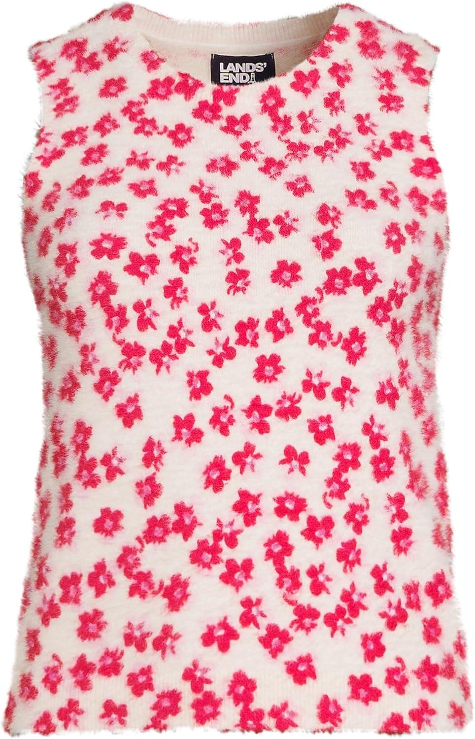 Lands’ End Women’s Fine Gauge Eyelash Printed Sleeveless Sweater(Light Rose/Berry Rouge Floral)