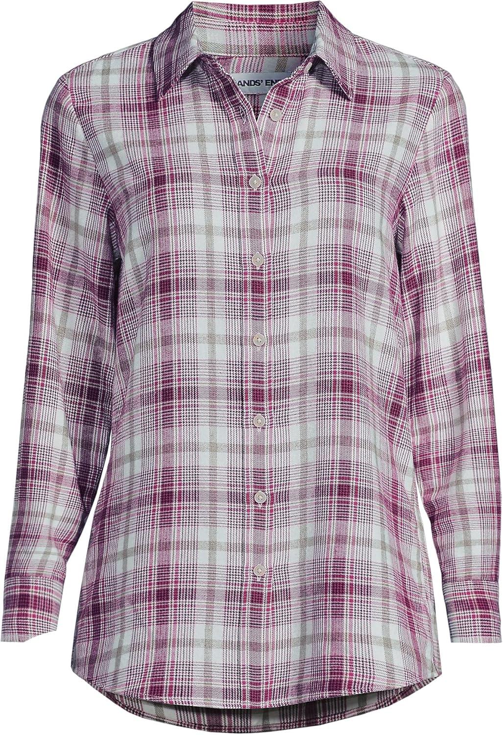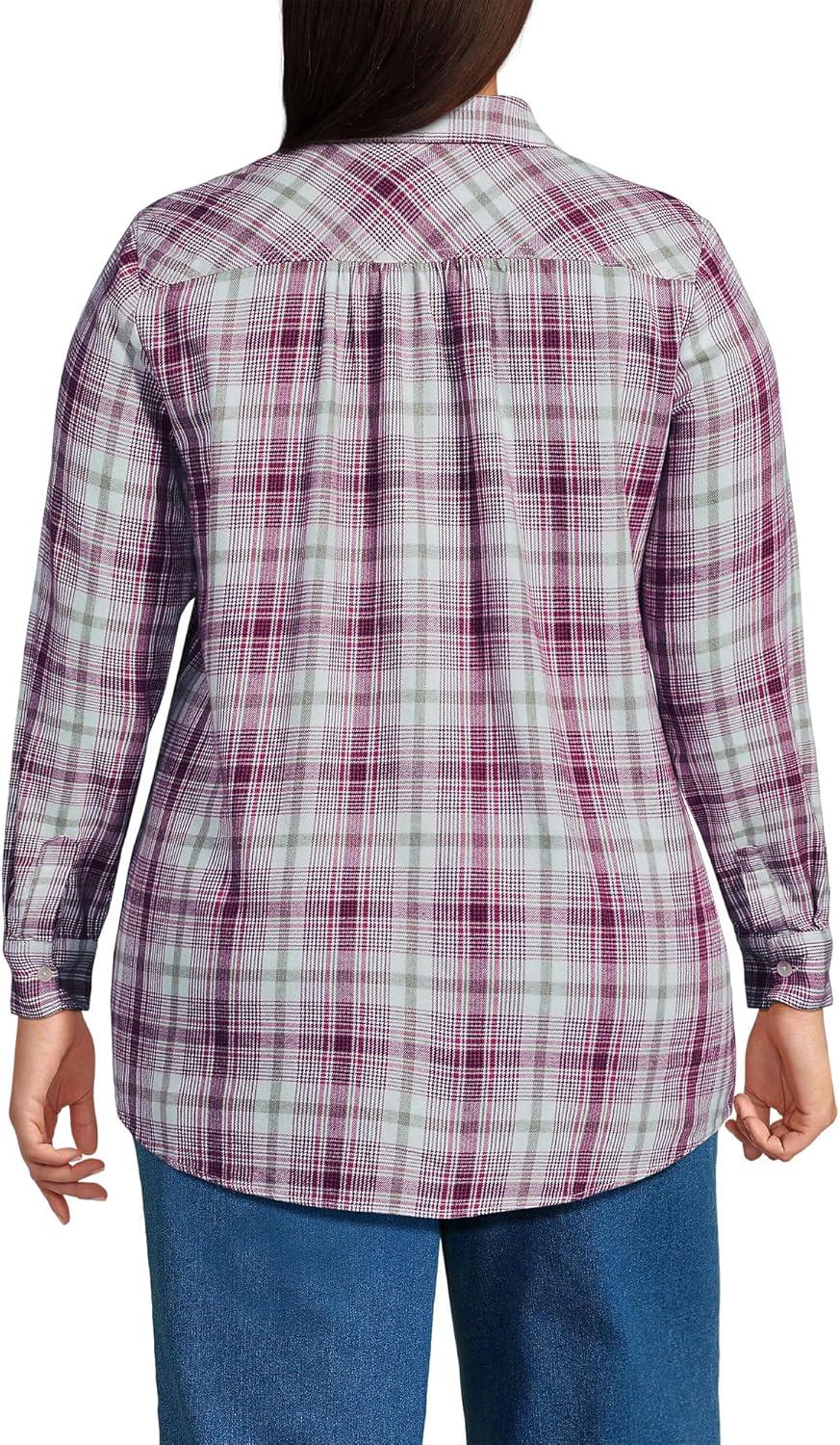 Lands’ End Women’s Flannel Boyfriend Fit Long Sleeve Shirt(Ivory/Light Raspberry Plaid)