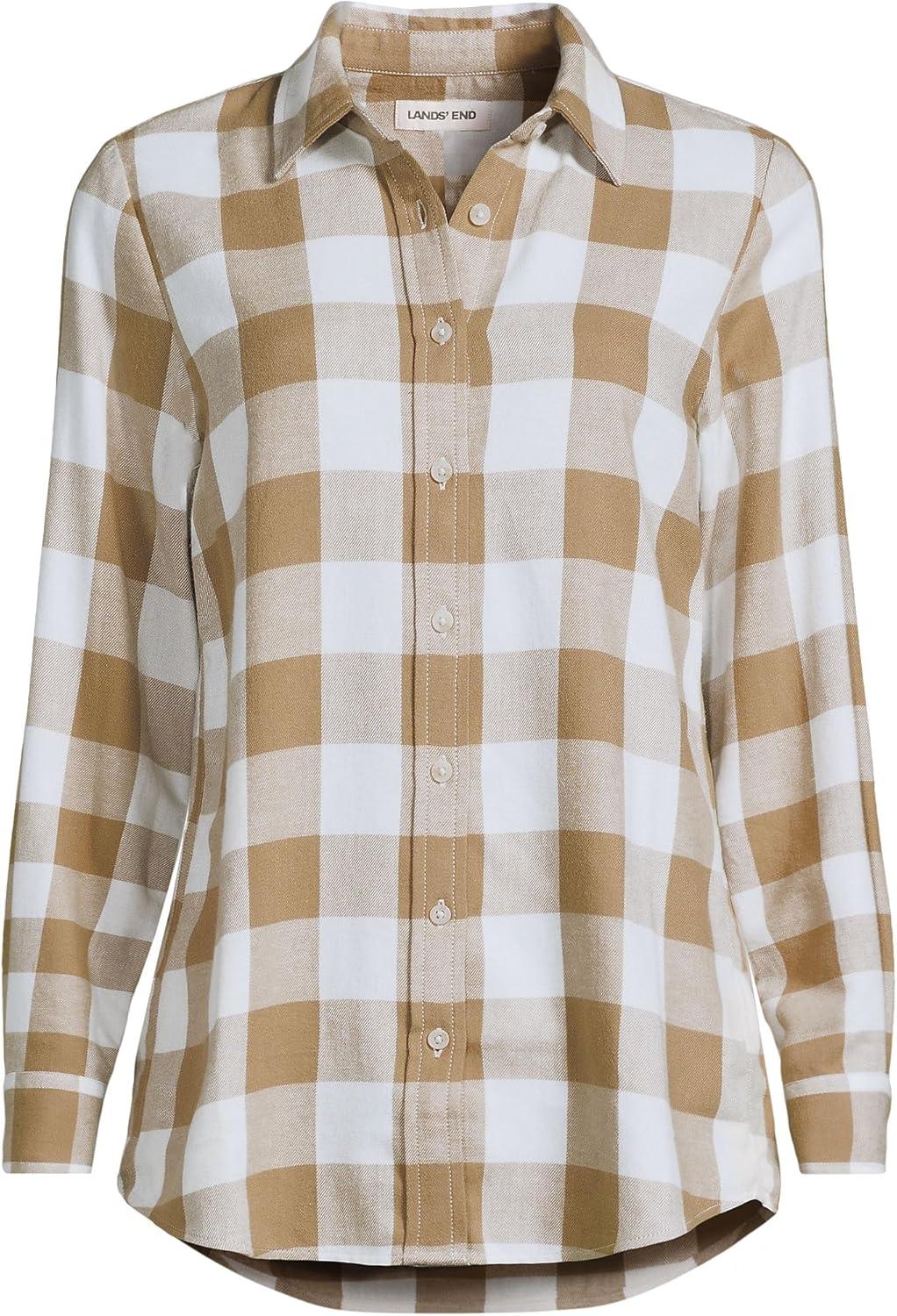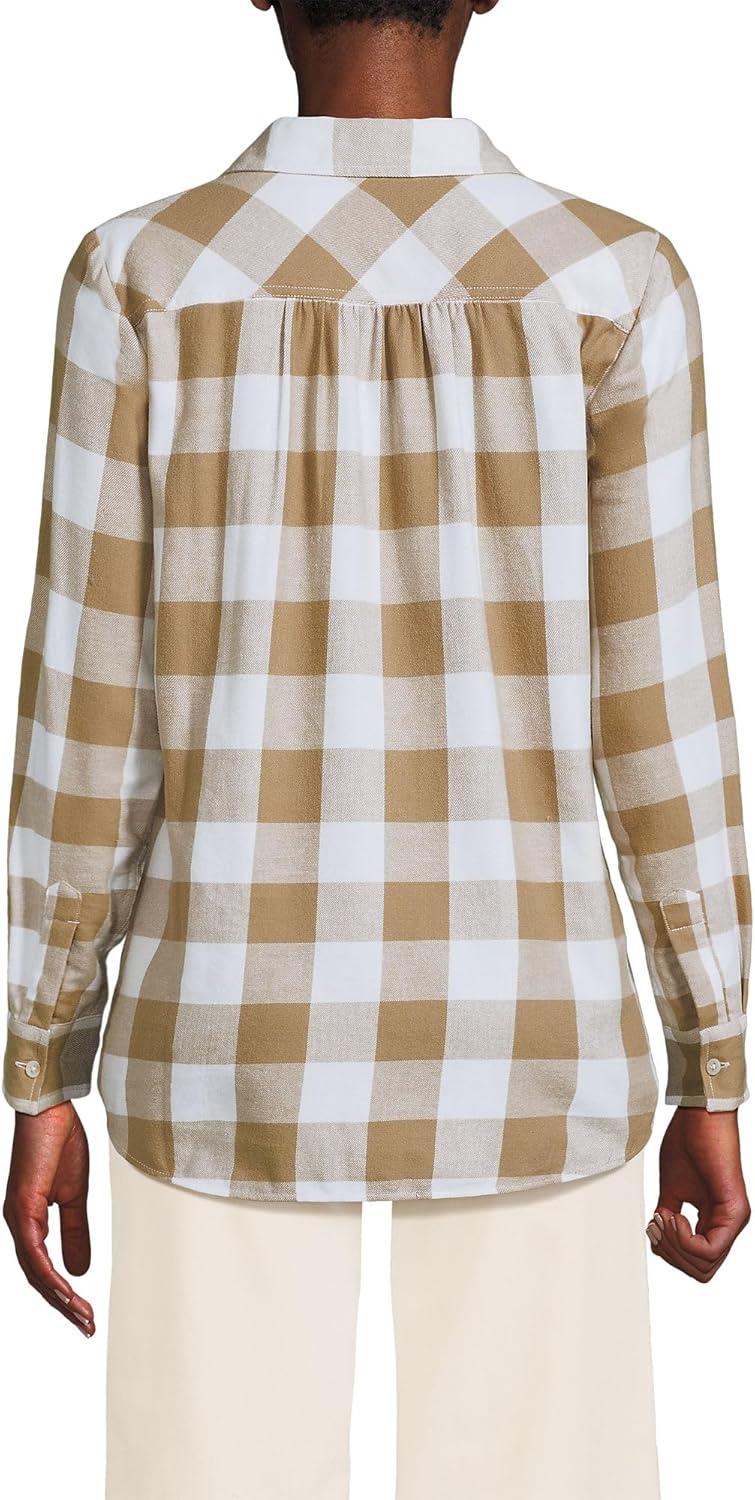 Lands’ End Women’s Flannel Boyfriend Fit Long Sleeve Shirt(Rich Camel Buffalo Check)