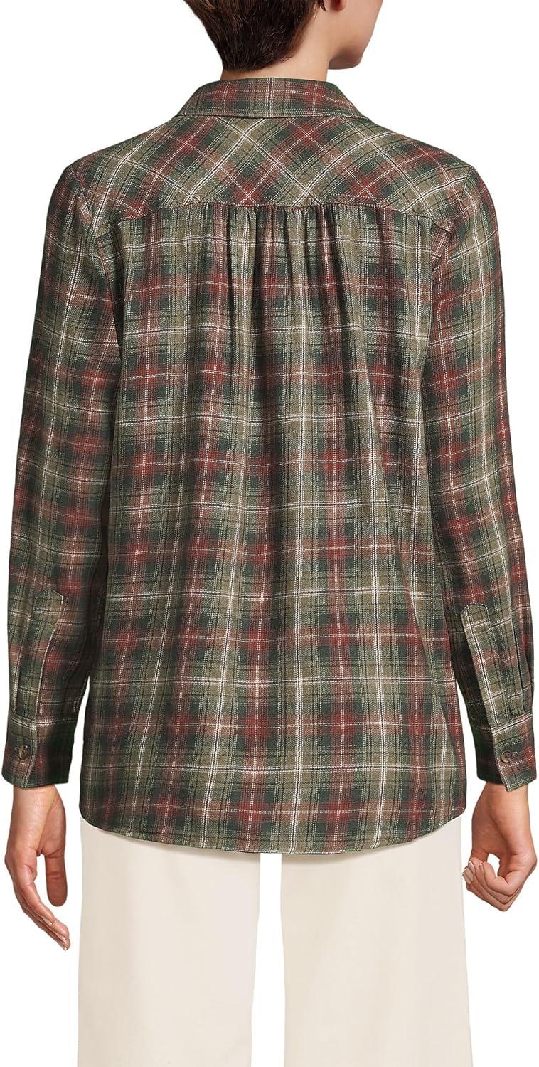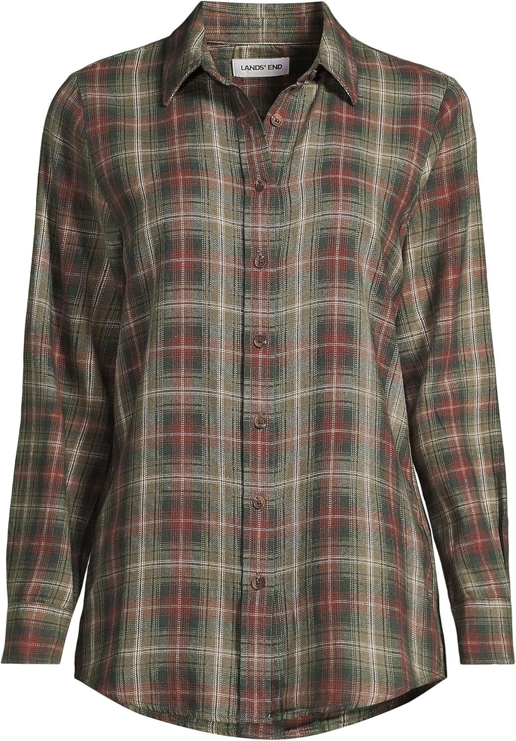 Lands’ End Women’s Flannel Boyfriend Fit Long Sleeve Shirt(Sunwashed Olive Multi Plaid)