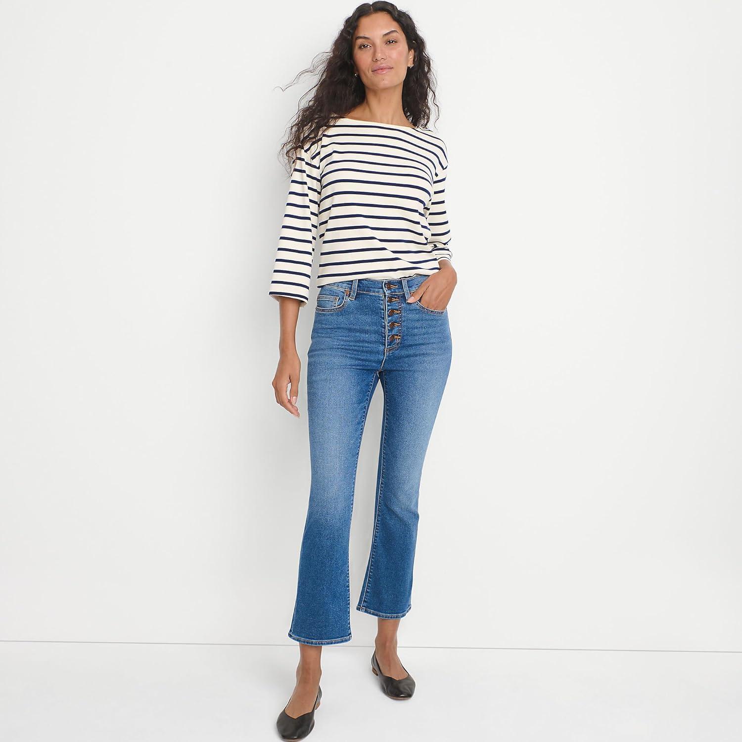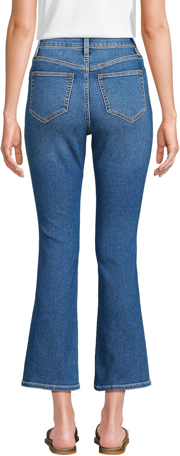 Lands’ End Women’s High Rise Denim Button Front Kick Flare Crop Jeans(Indigo Tide Blue)