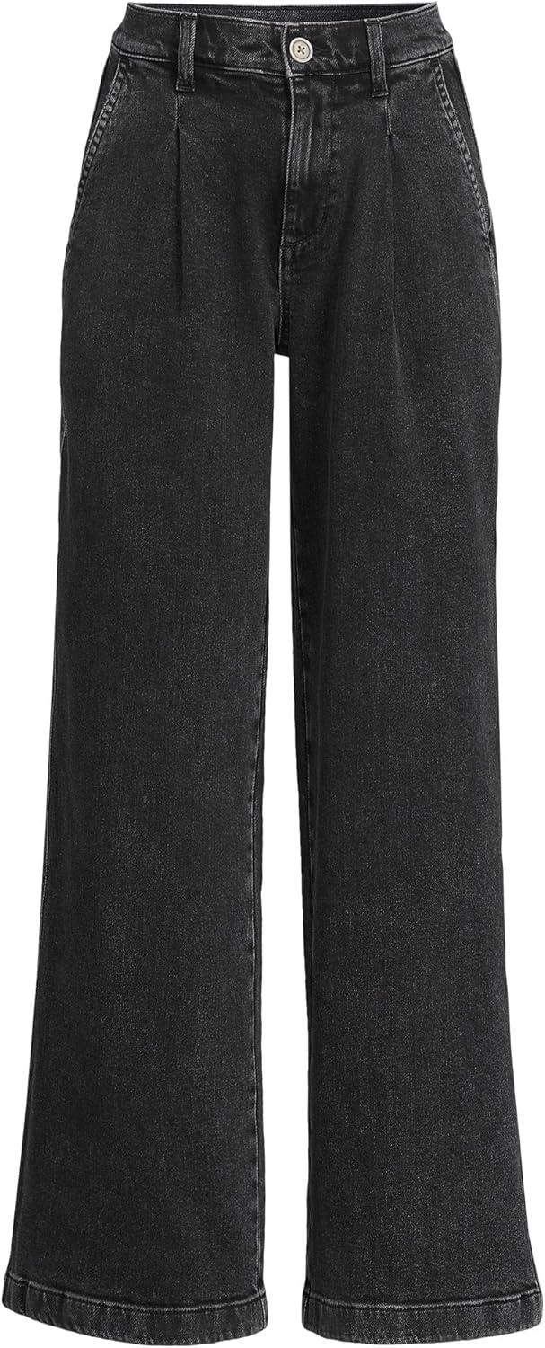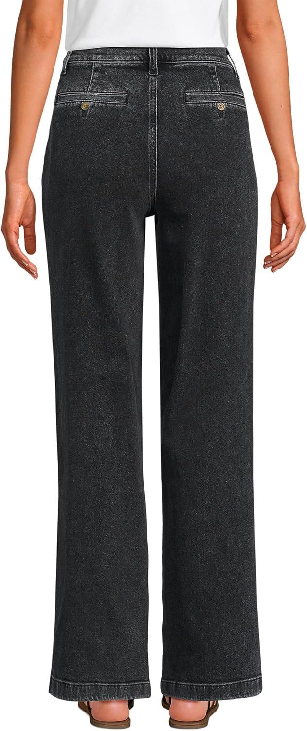 Lands’ End Women’s High Rise Soft Denim Pleated Wide Leg Trousers(Black Wash)