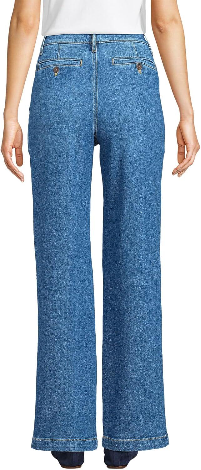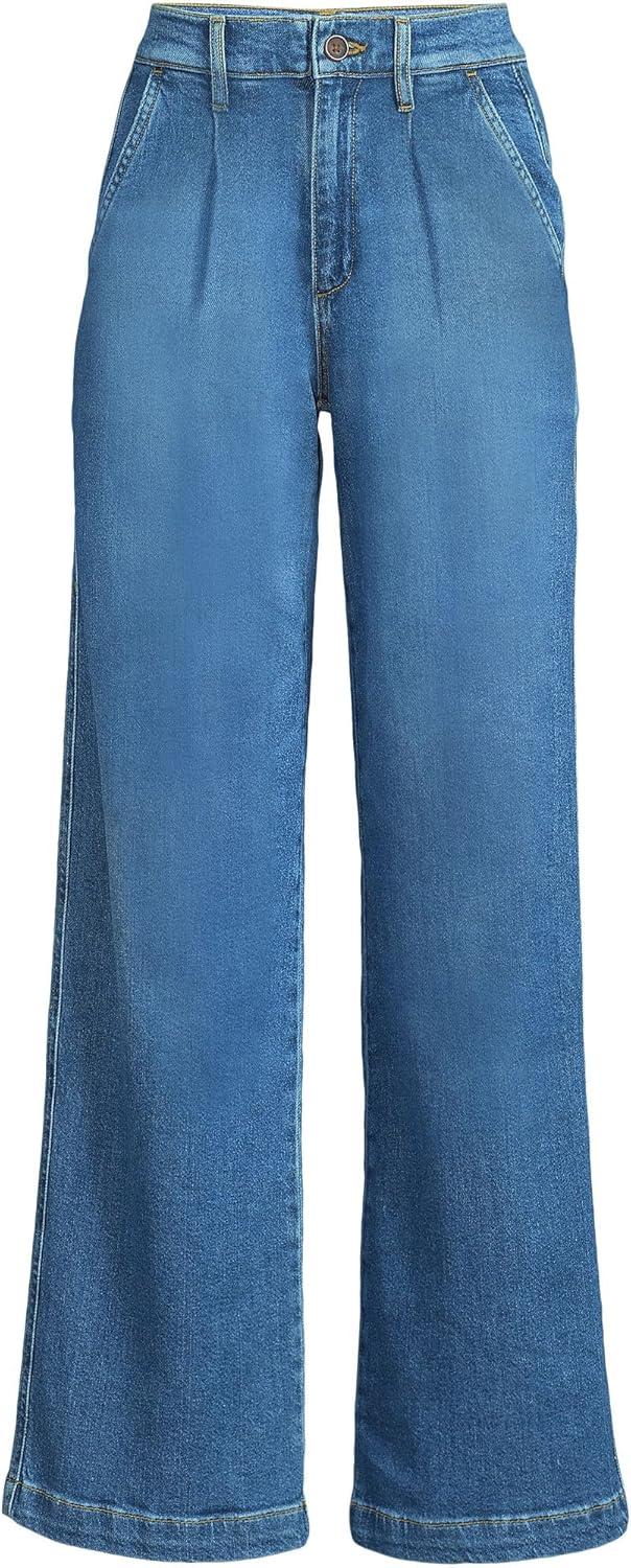 Lands’ End Women’s High Rise Soft Denim Pleated Wide Leg Trousers(Indigo Tide Blue)