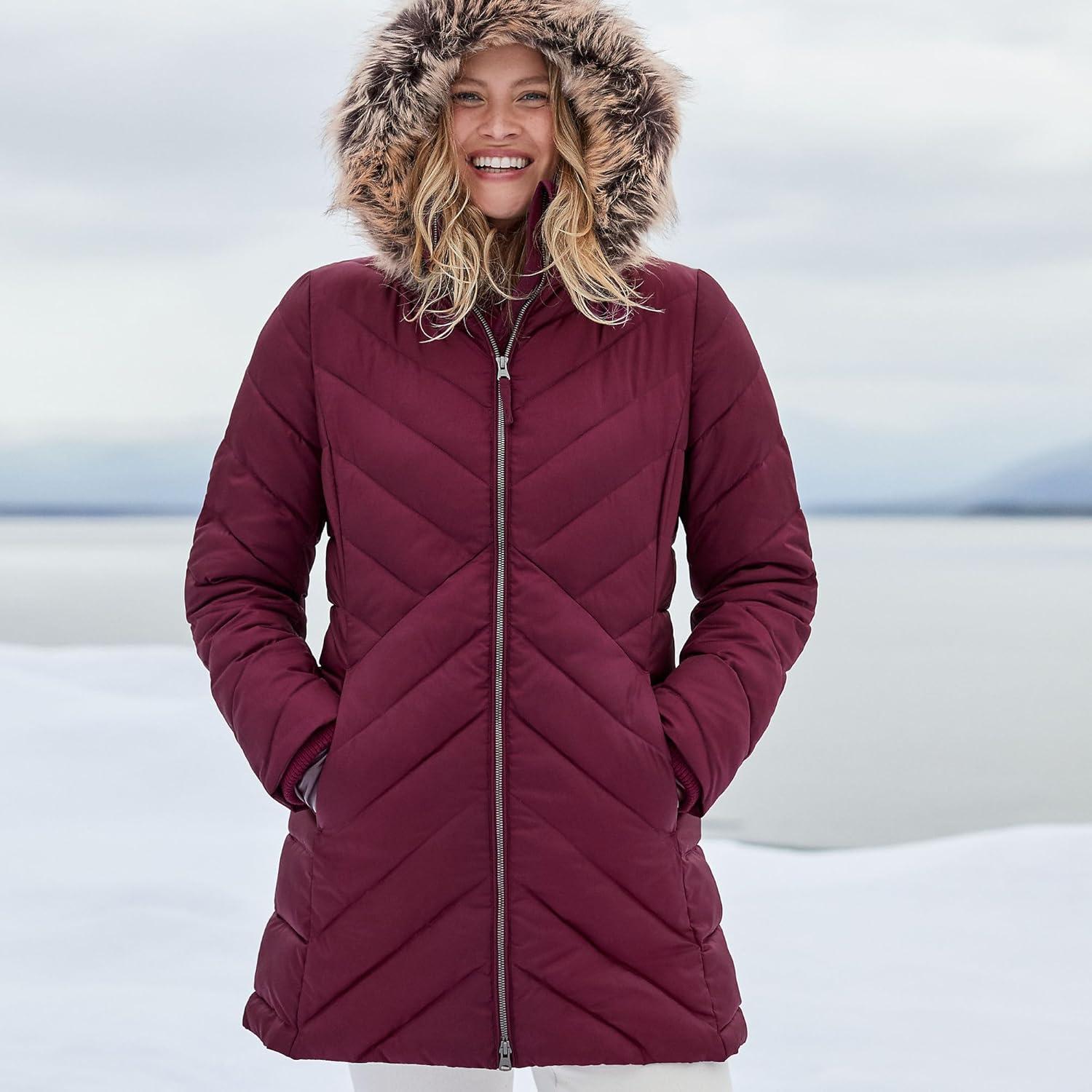 Lands’ End Women’s Insulated Cozy Fleece Lined Primaloft Coat(Bordeaux Berry)