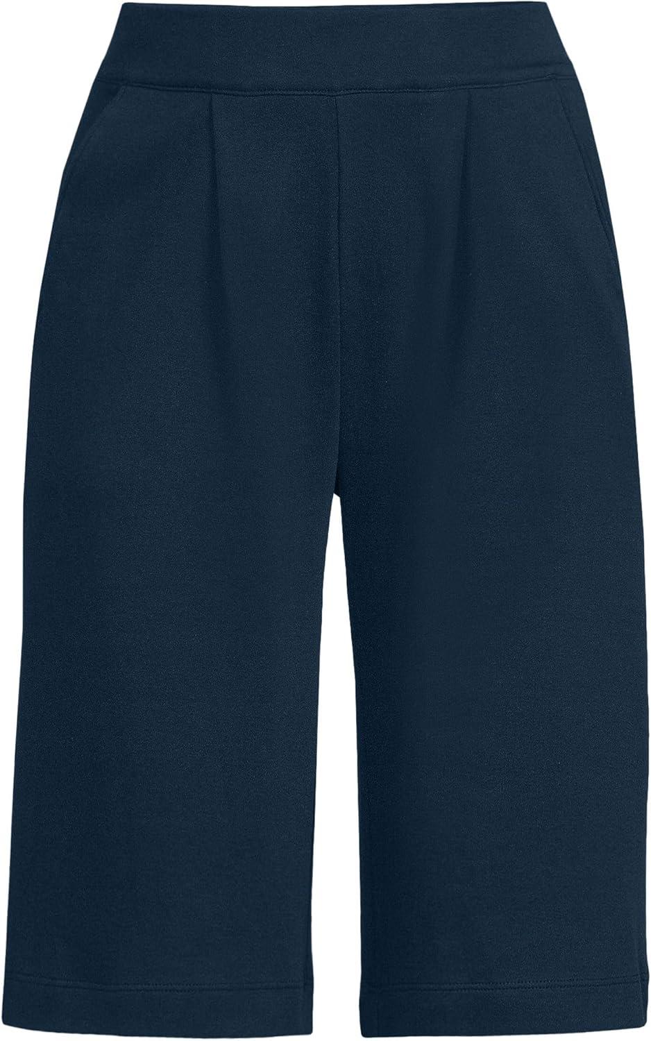 Lands’ End Women’s Knit High Rise Pleated 12″ Bermuda Shorts(Radiant Navy)