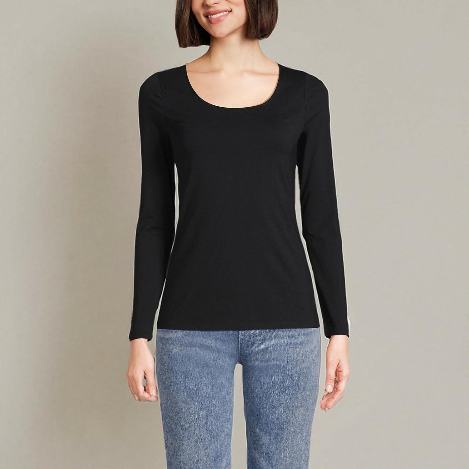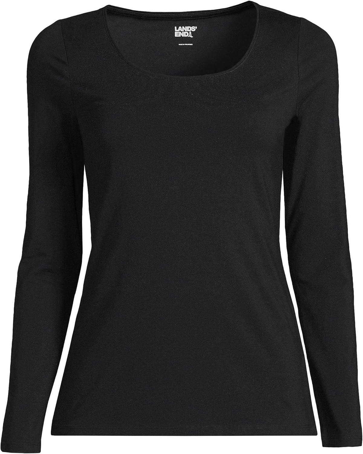 Lands’ End Women’s Long Sleeve Lightweight Jersey Scoop Neck T-Shirt(Black)