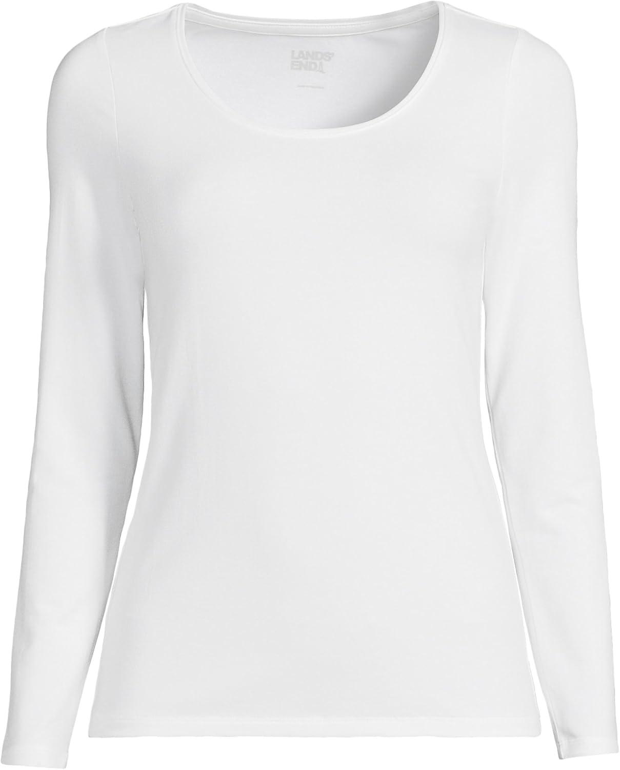 Lands’ End Women’s Long Sleeve Lightweight Jersey Scoop Neck T-Shirt(White)
