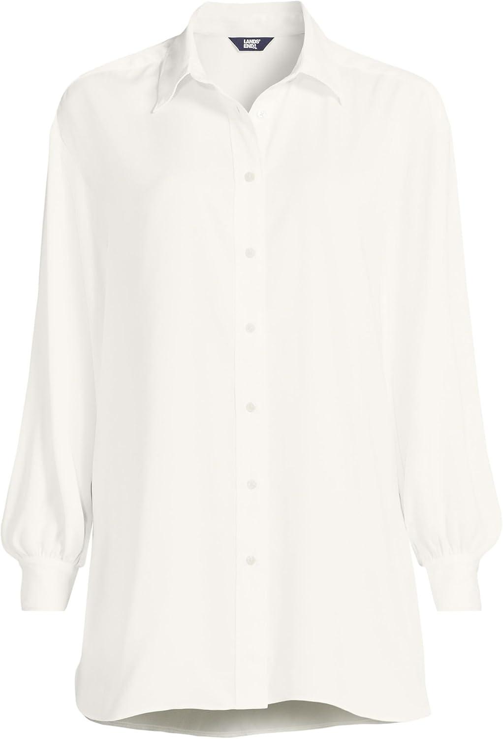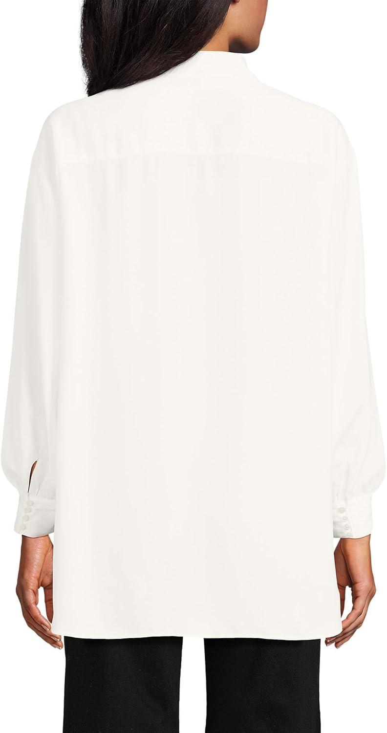 Lands’ End Women’s Long Sleeve Oversized Satin Buttondown Tunic(Eggshell White)