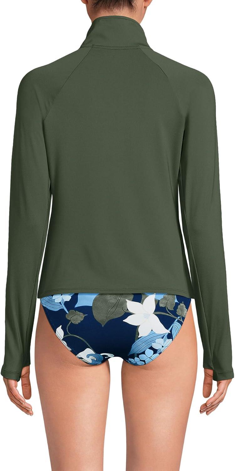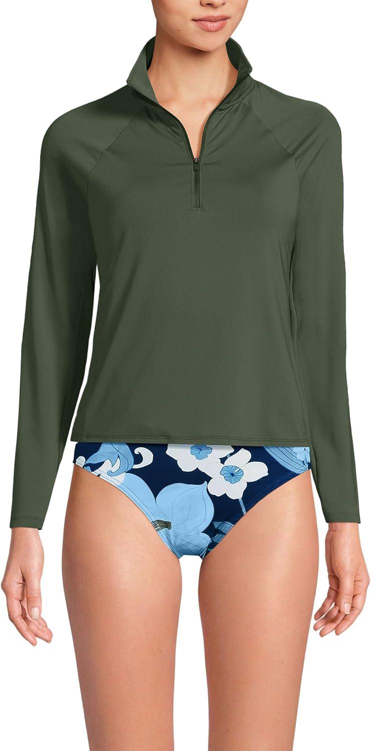 Lands’ End Women’s Long Sleeve Rash Guard Cover-up UPF 50(Rich Olive Green)