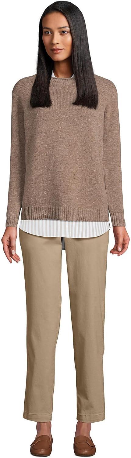Lands’ End Women’s Mid Rise Classic Straight Leg Chino Ankle Pants(Desert Tan)