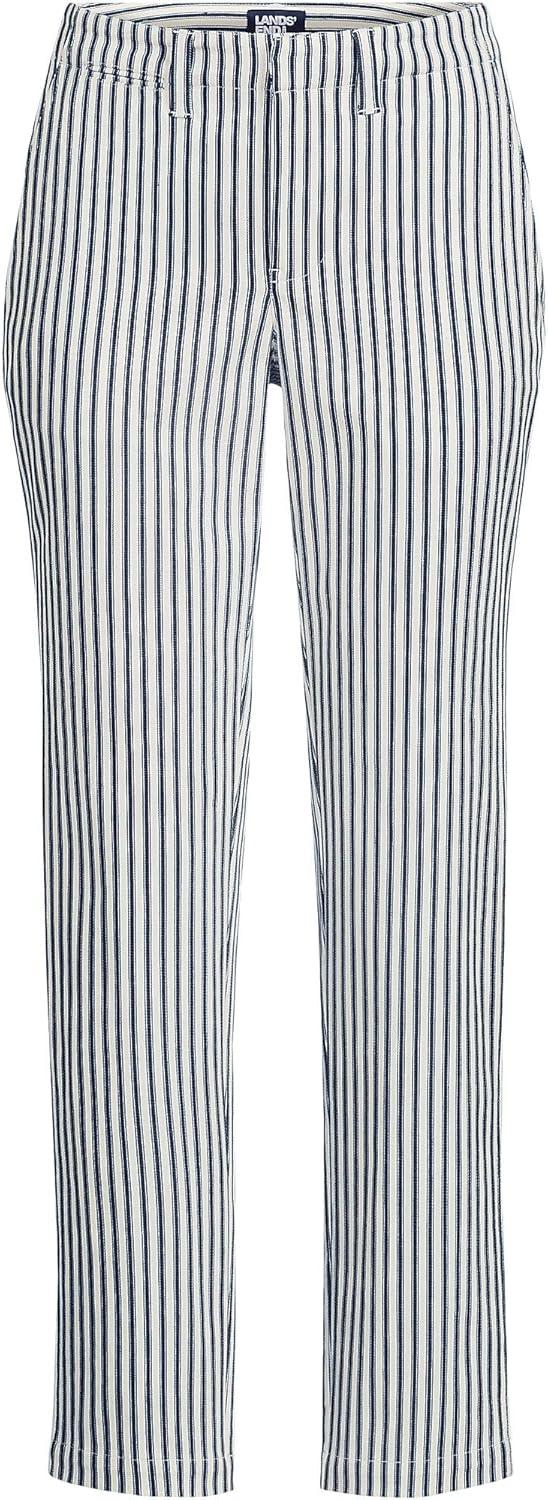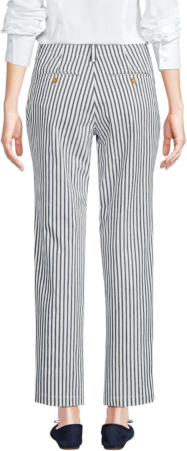 Lands’ End Women’s Mid Rise Classic Straight Leg Chino Ankle Pants(Ivory/Deep Sea Awning Stripe)
