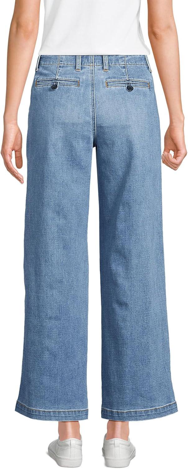 Lands’ End Women’s Mid Rise Denim Wide Leg Ankle Jeans(Beau Blue)