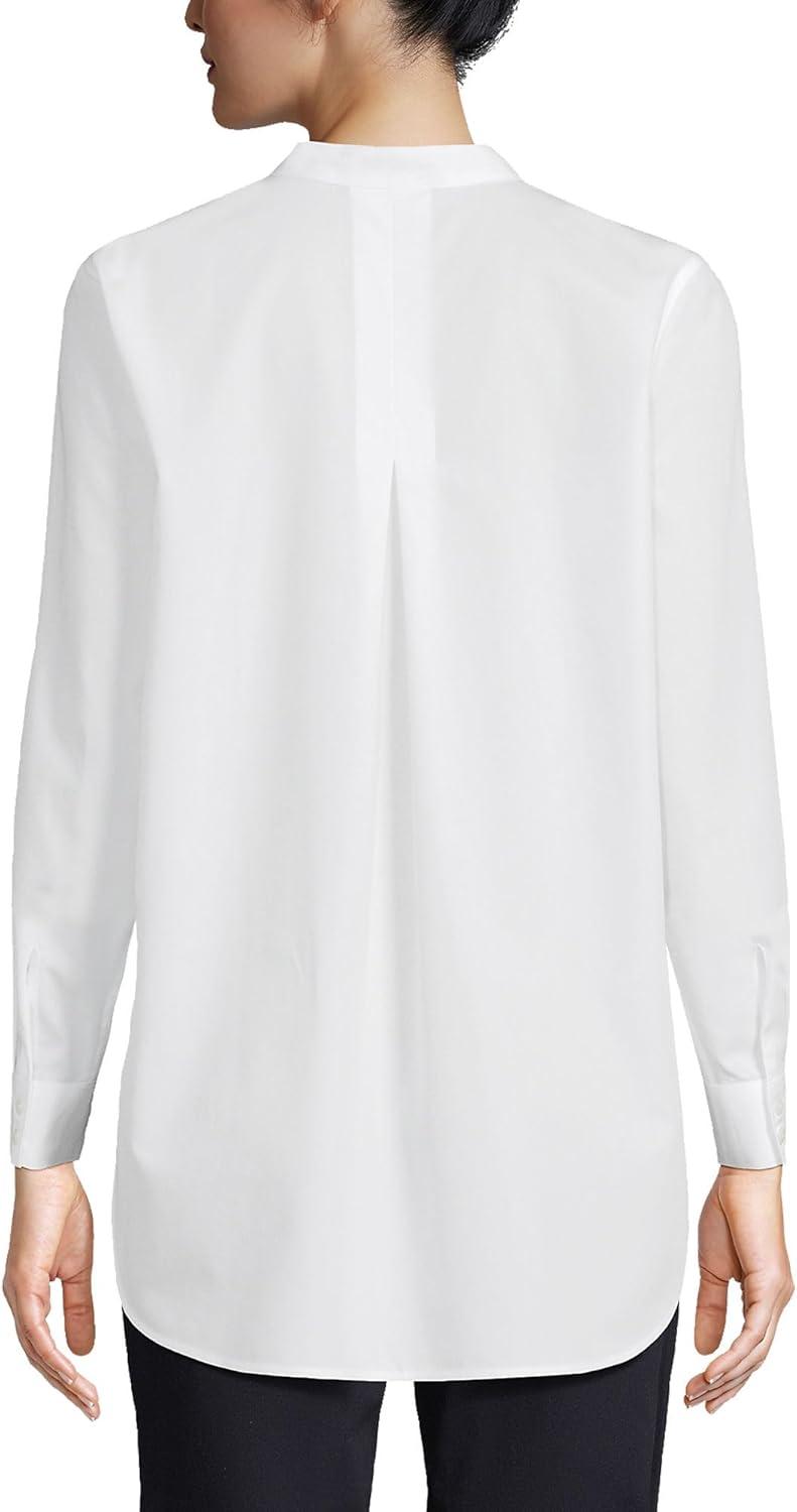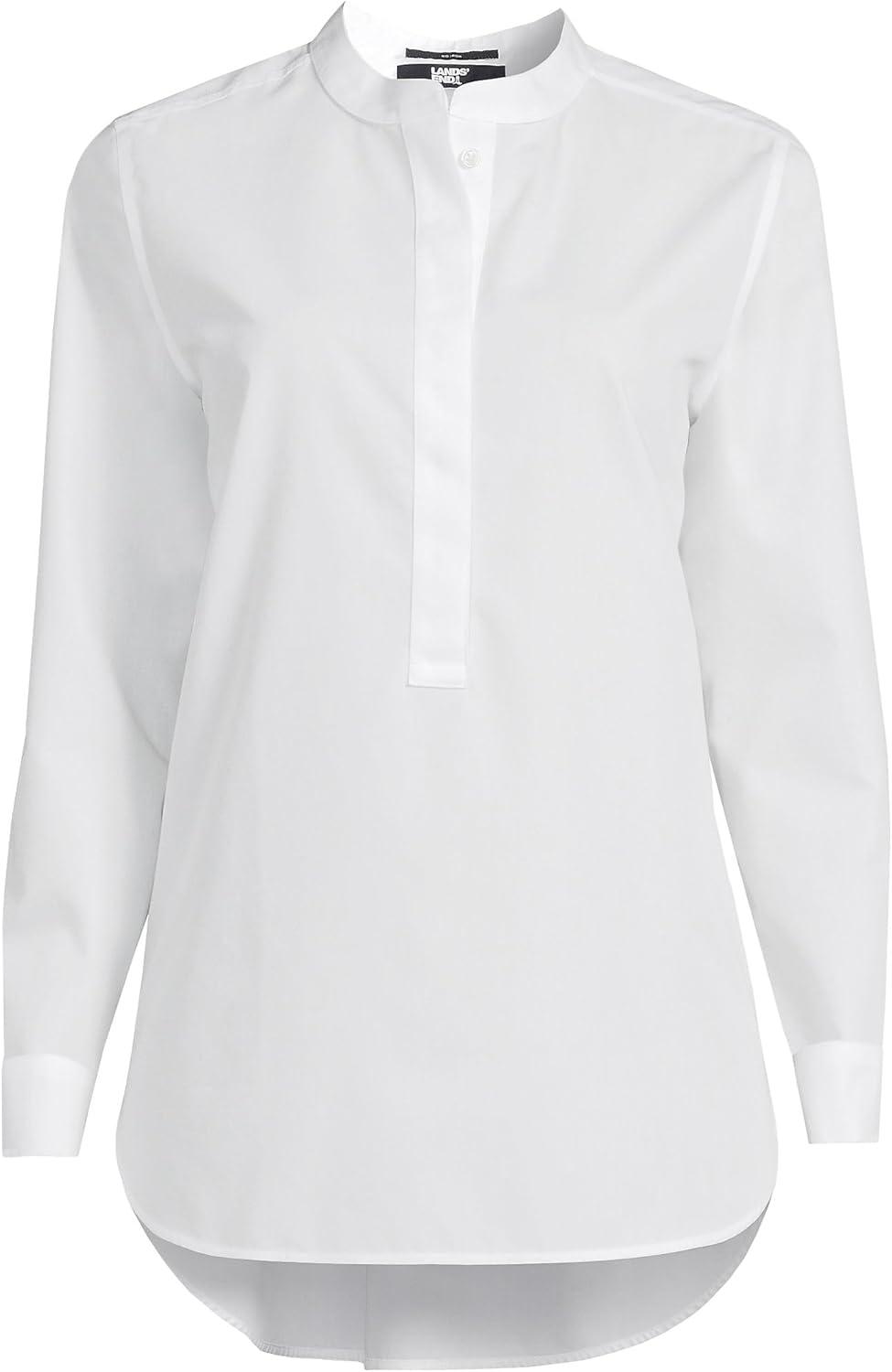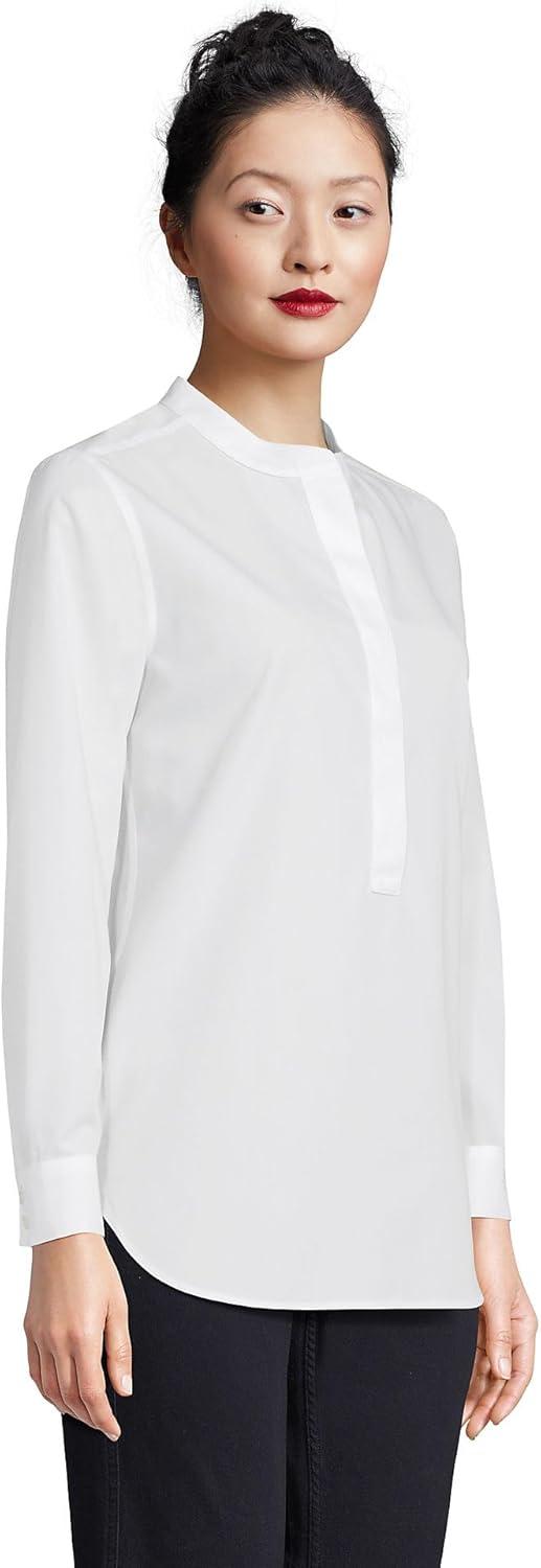 Lands’ End Women’s No Iron Long Sleeve Banded Collar Popover Shirt(White)