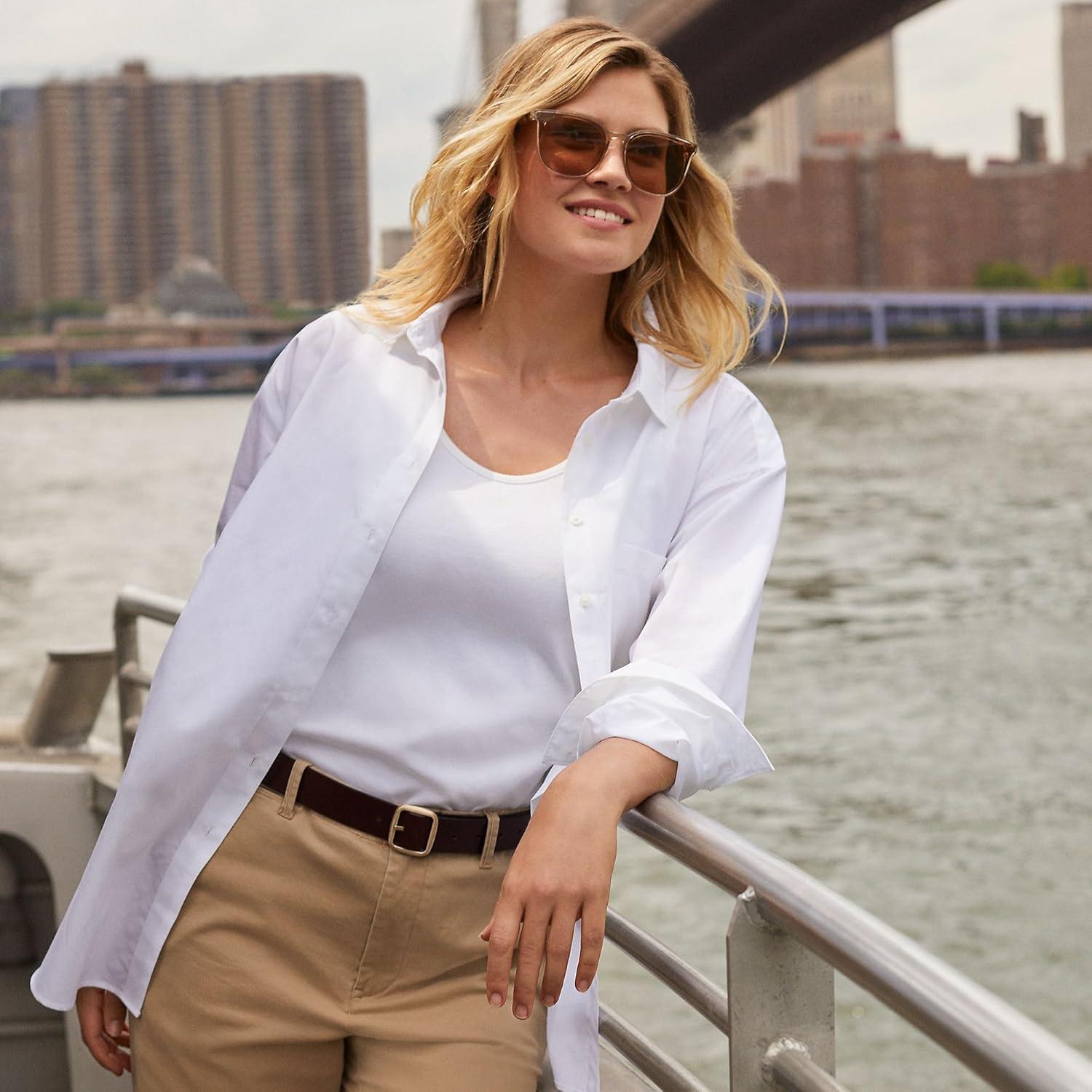 Lands’ End Women’s No Iron Oversized Poplin Extra Long Tunic(White)