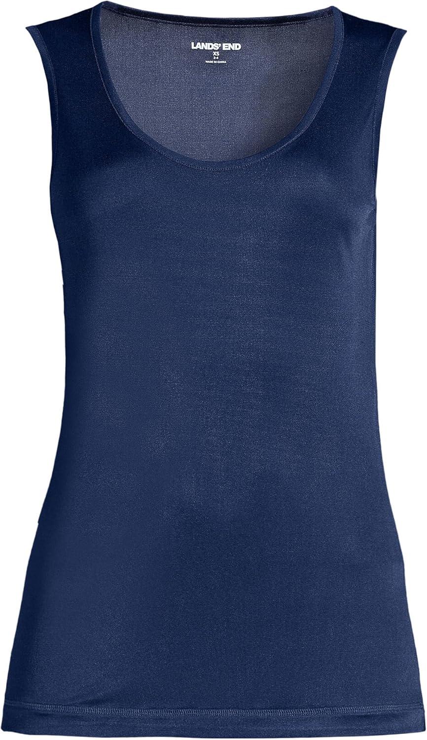 Lands’ End Women’s Petite Silk Interlock Thermal Long Underwear Base Layer Tank Top(Deep Sea Navy)