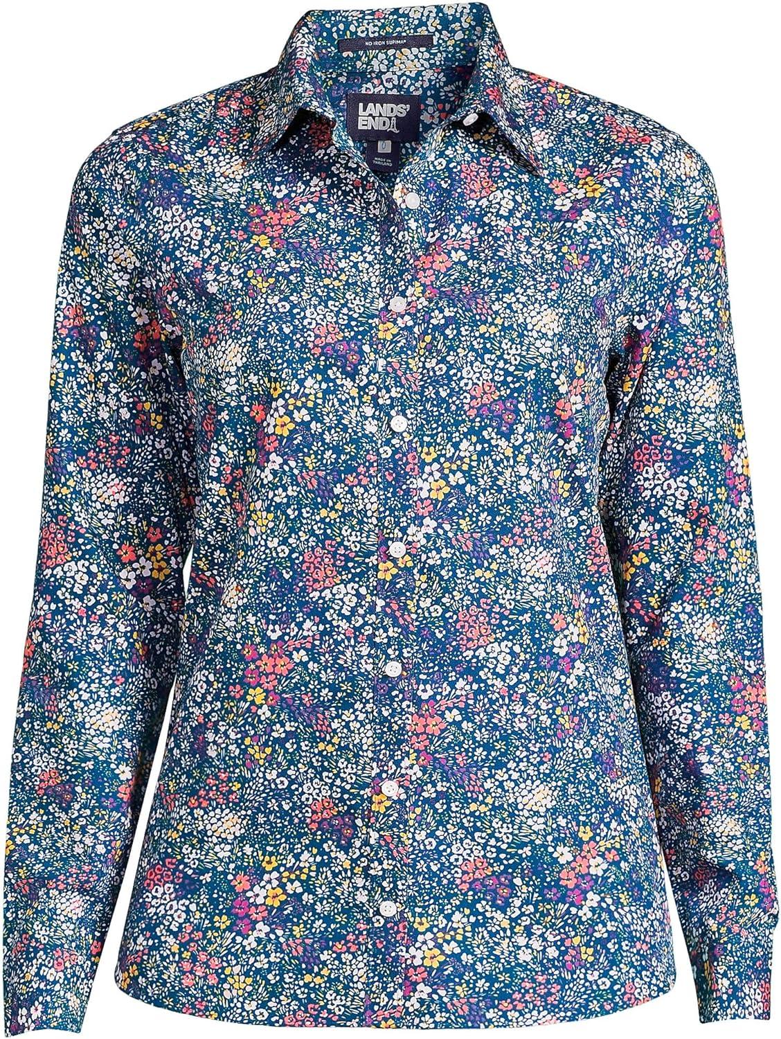 Lands’ End Women’s Pinwale Cord Long Sleeve Shirt(Baltic Teal Ditsy Floral)