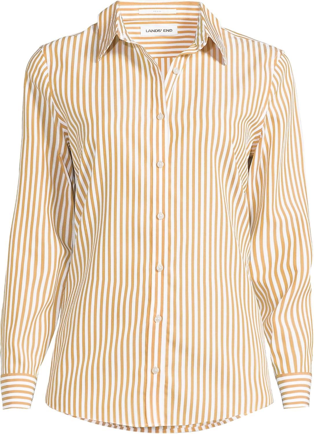 Lands’ End Women’s Pinwale Cord Long Sleeve Shirt(Dijon Gold/White Stripe)