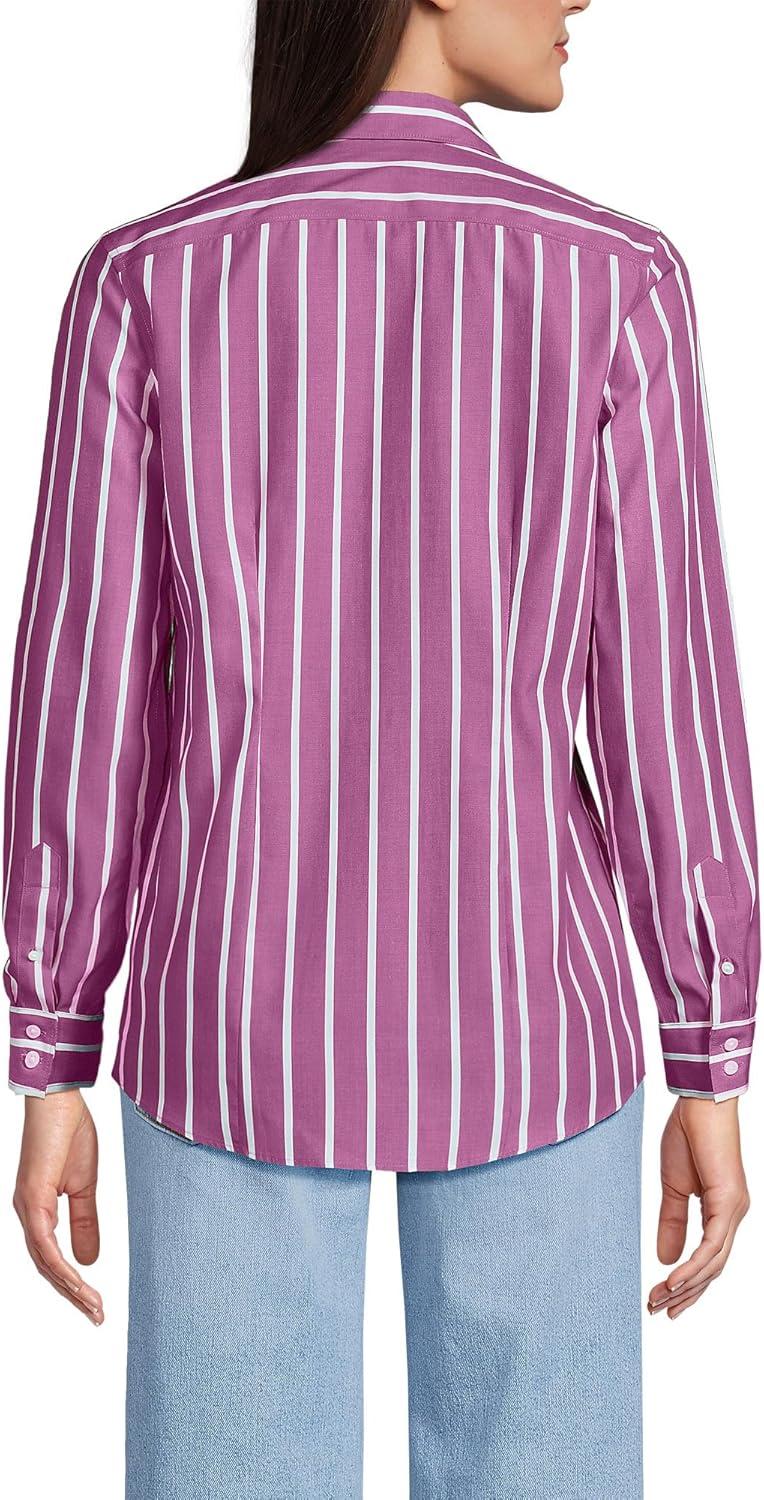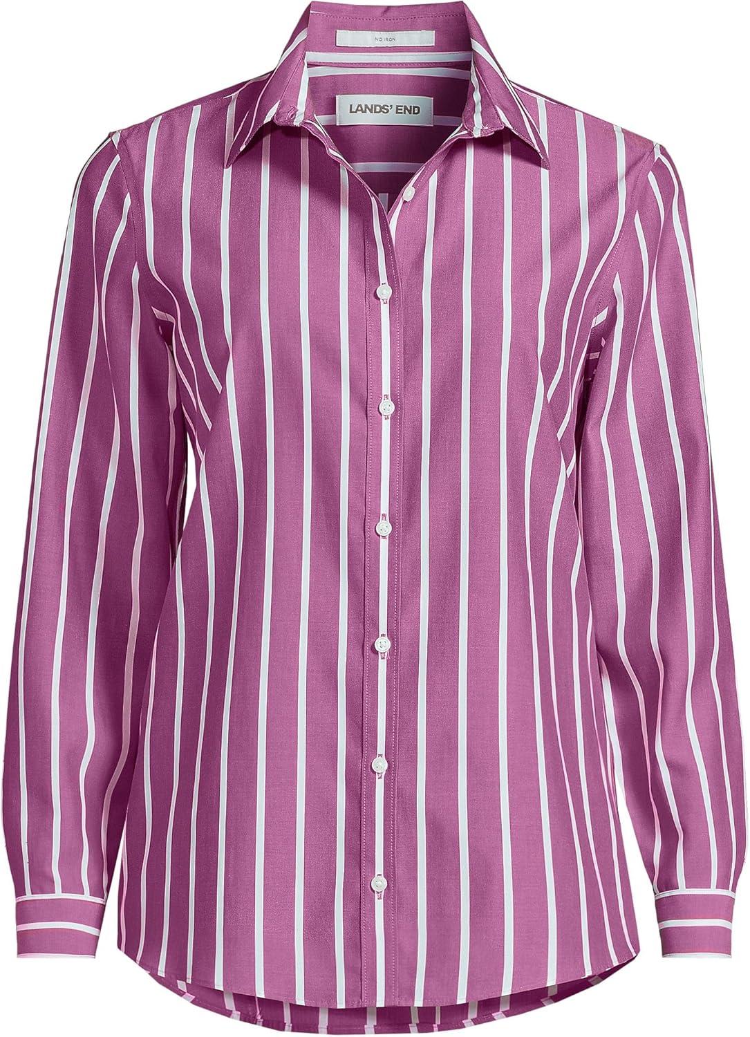 Lands’ End Women’s Pinwale Cord Long Sleeve Shirt(Light Raspberry/White Stripe)