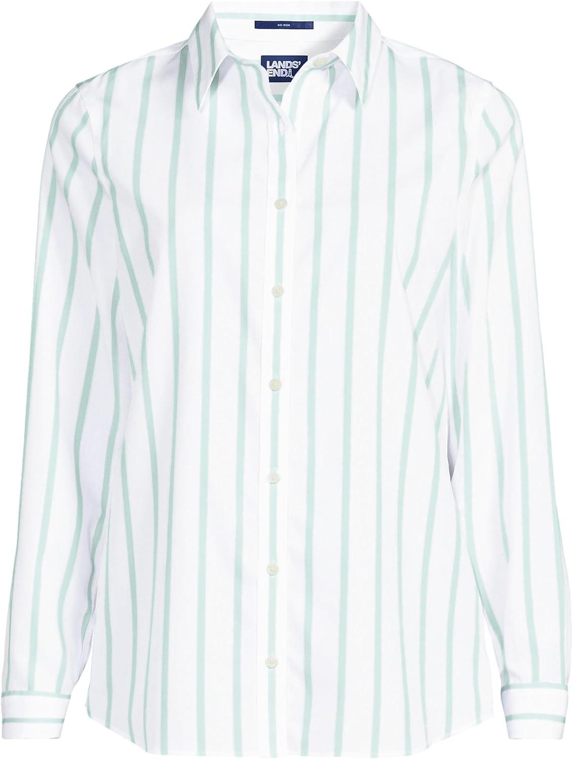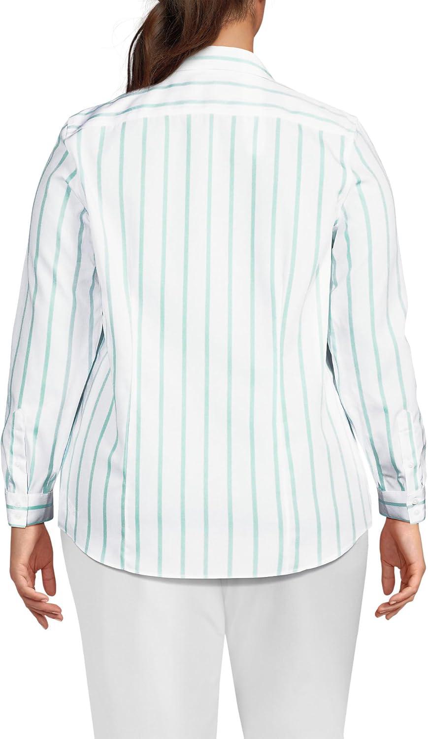 Lands’ End Women’s Pinwale Cord Long Sleeve Shirt(White/Aqua Classic Stripe)
