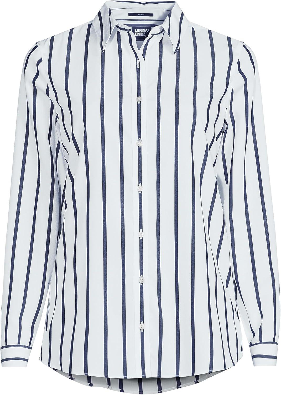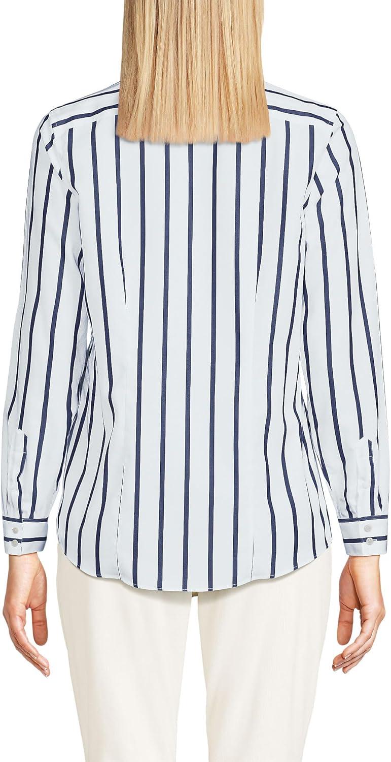 Lands’ End Women’s Pinwale Cord Long Sleeve Shirt(White/Navy Classic Stripe)