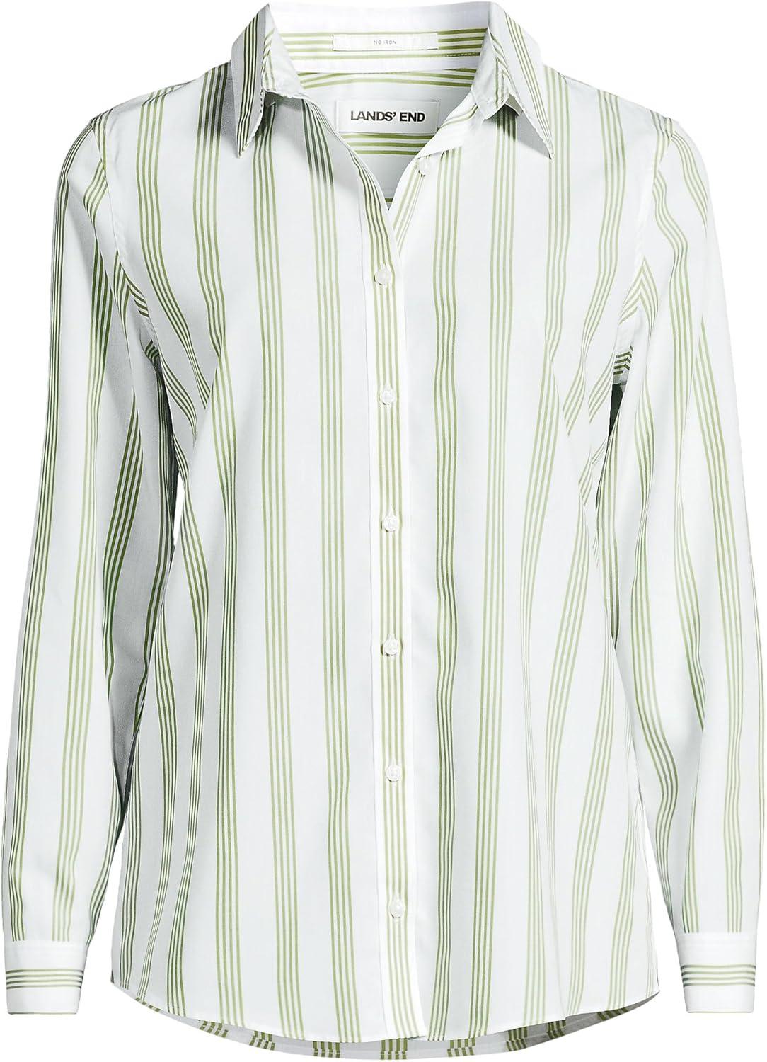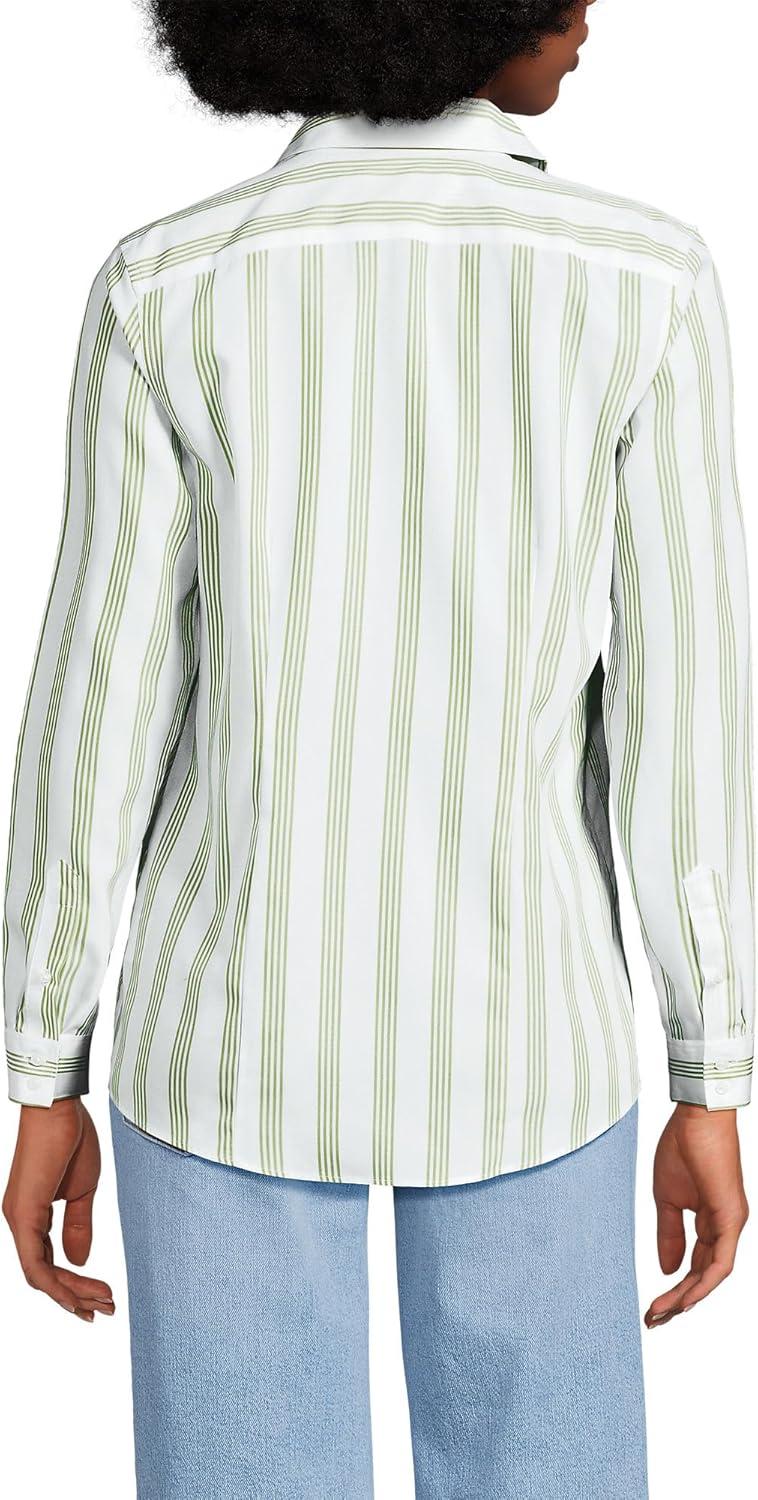 Lands’ End Women’s Pinwale Cord Long Sleeve Shirt(White/Winter Pear Quad Stripe)
