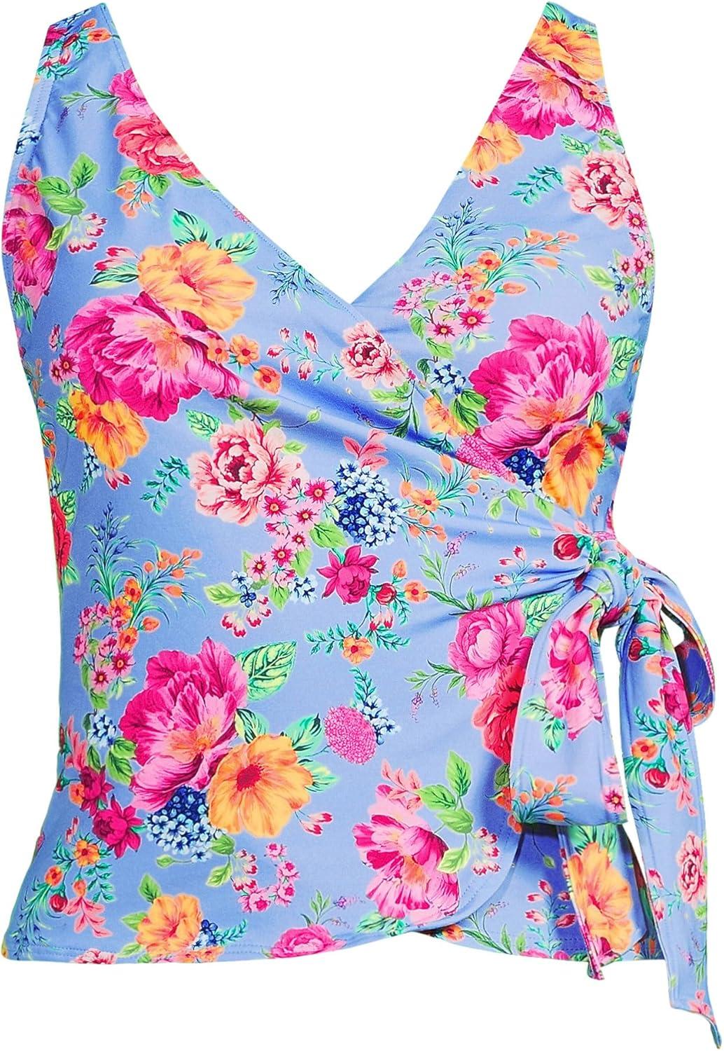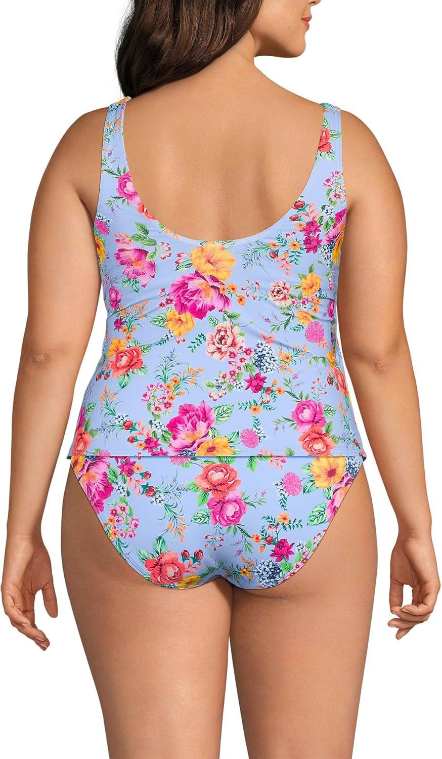 Lands’ End Women’s Plus Size DD-Cup Side Tie Tankini Top(Cloud Blue Romantic Floral)