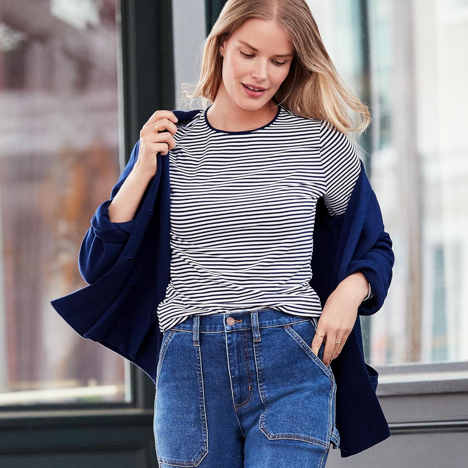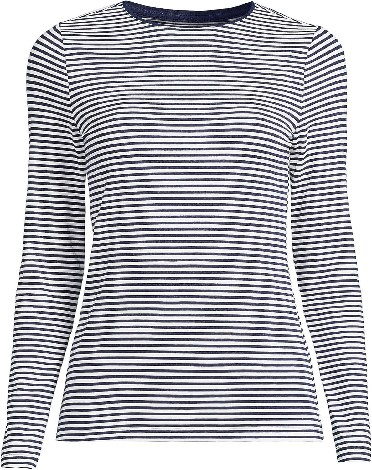 Lands’ End Women’s Plus Size Lightweight Jersey Skimming Long Sleeve Crew Neck T-Shirt(Navy/White Micro Stripe)