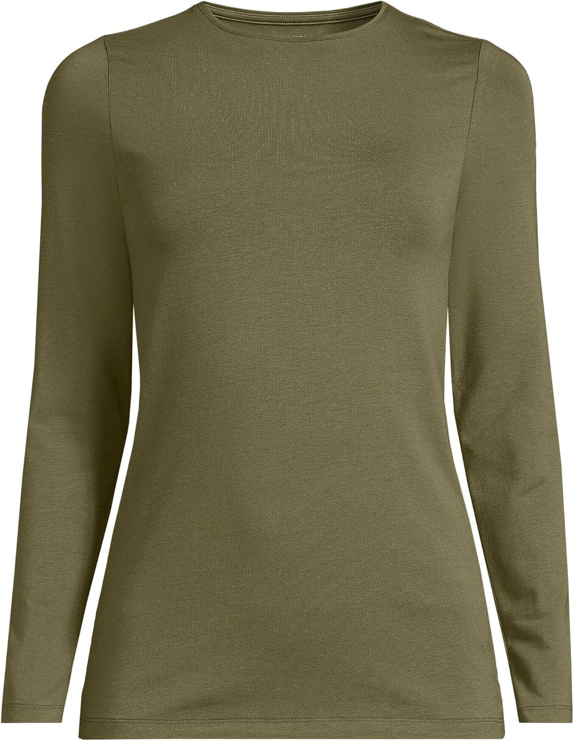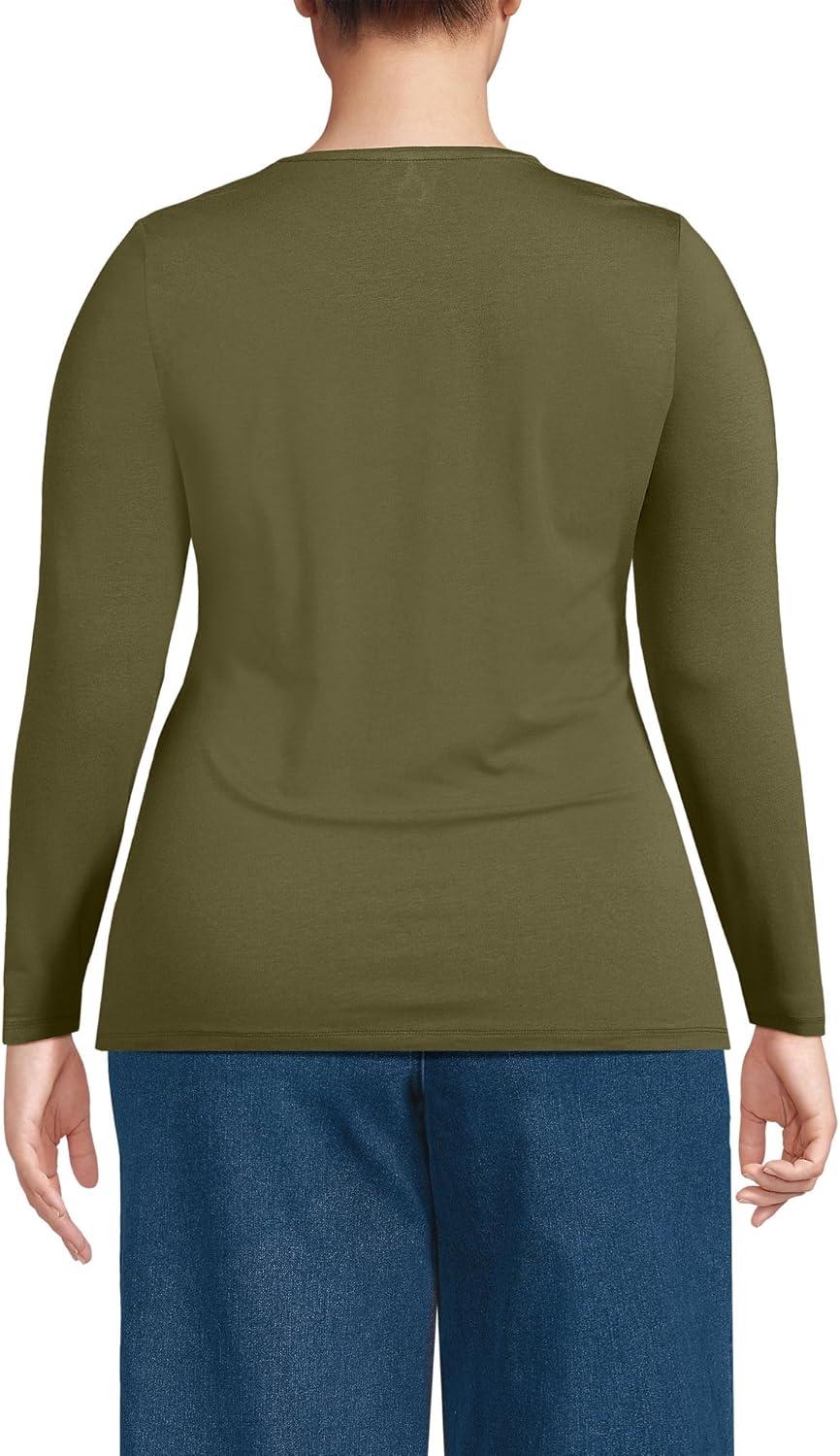 Lands’ End Women’s Plus Size Lightweight Jersey Skimming Long Sleeve Crew Neck T-Shirt(Olive Drab)