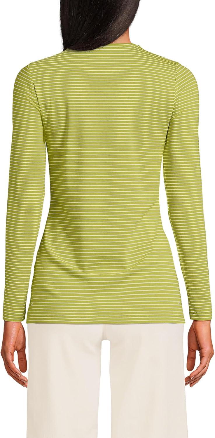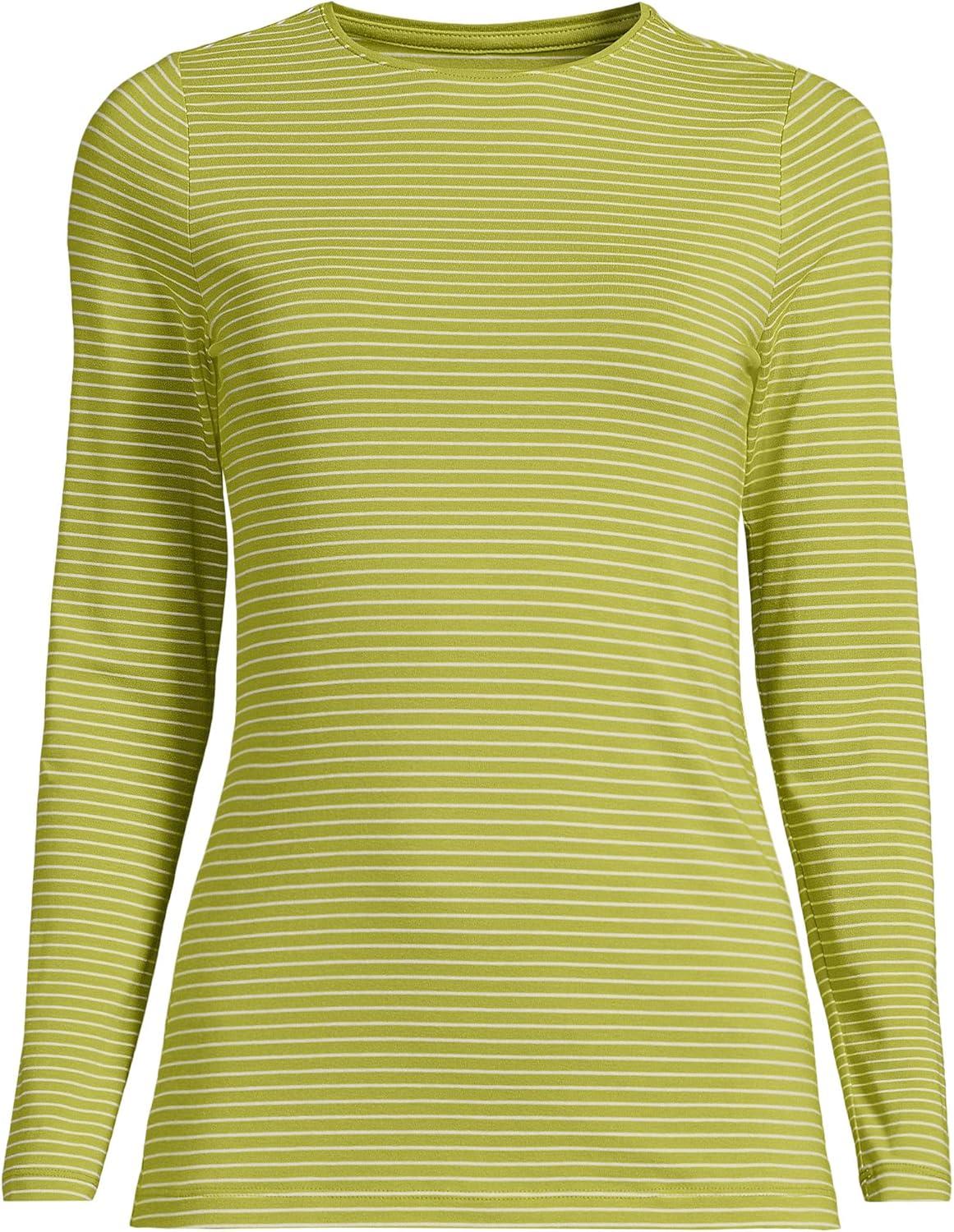 Lands’ End Women’s Plus Size Lightweight Jersey Skimming Long Sleeve Crew Neck T-Shirt(Vintage Lime Thin Stripe)