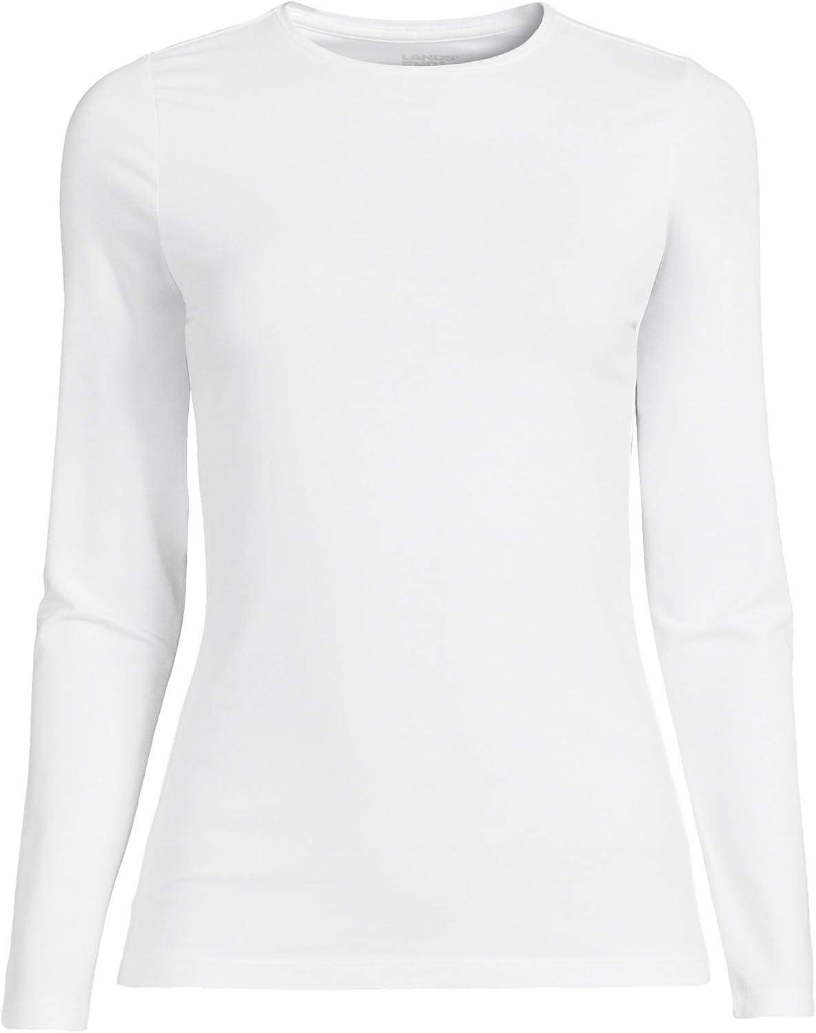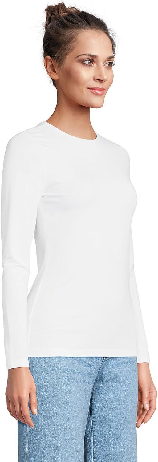Lands’ End Women’s Plus Size Lightweight Jersey Skimming Long Sleeve Crew Neck T-Shirt(White)