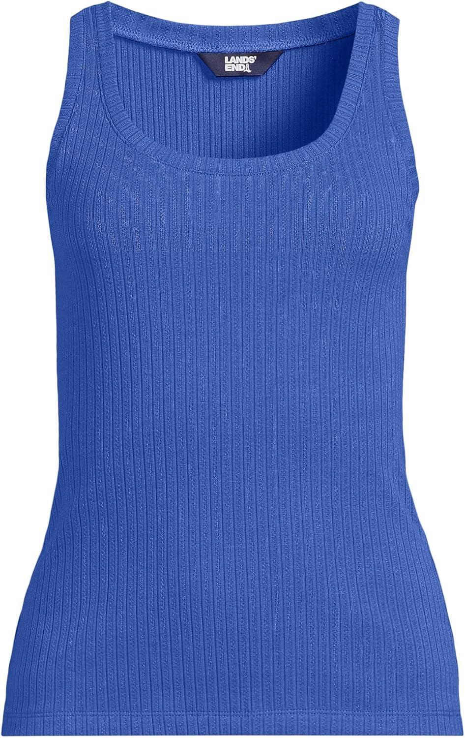 Lands’ End Women’s Pointelle Rib UNeck Tank(Blue Breeze)