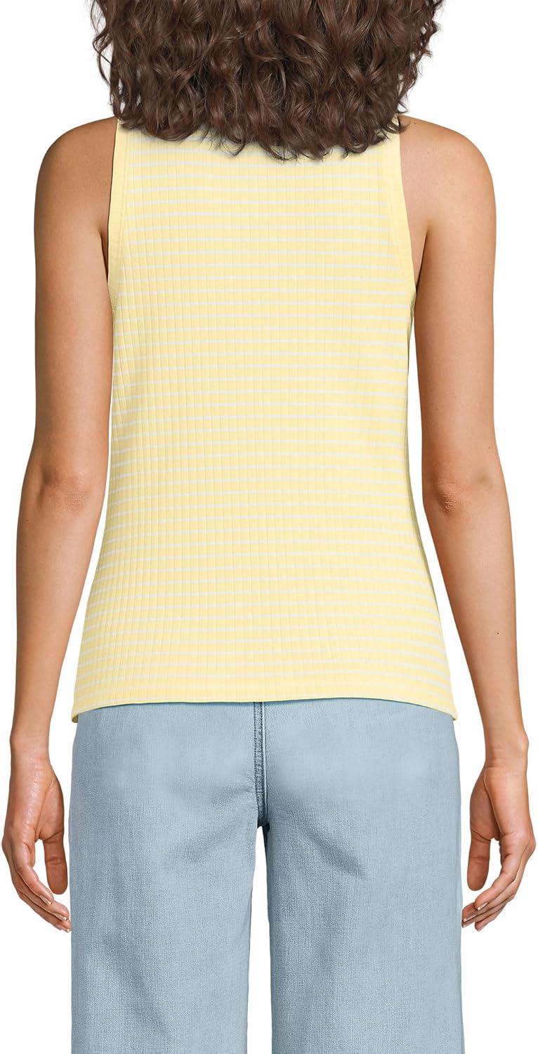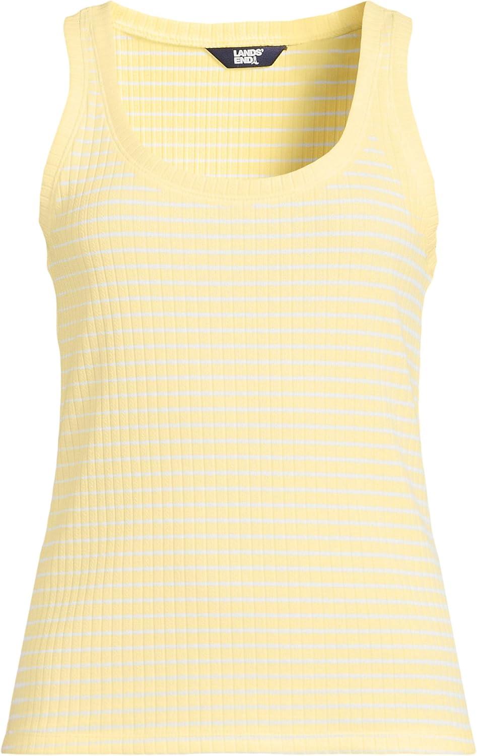 Lands’ End Women’s Pointelle Rib UNeck Tank(Pale Yellow/White Easy Stripe)