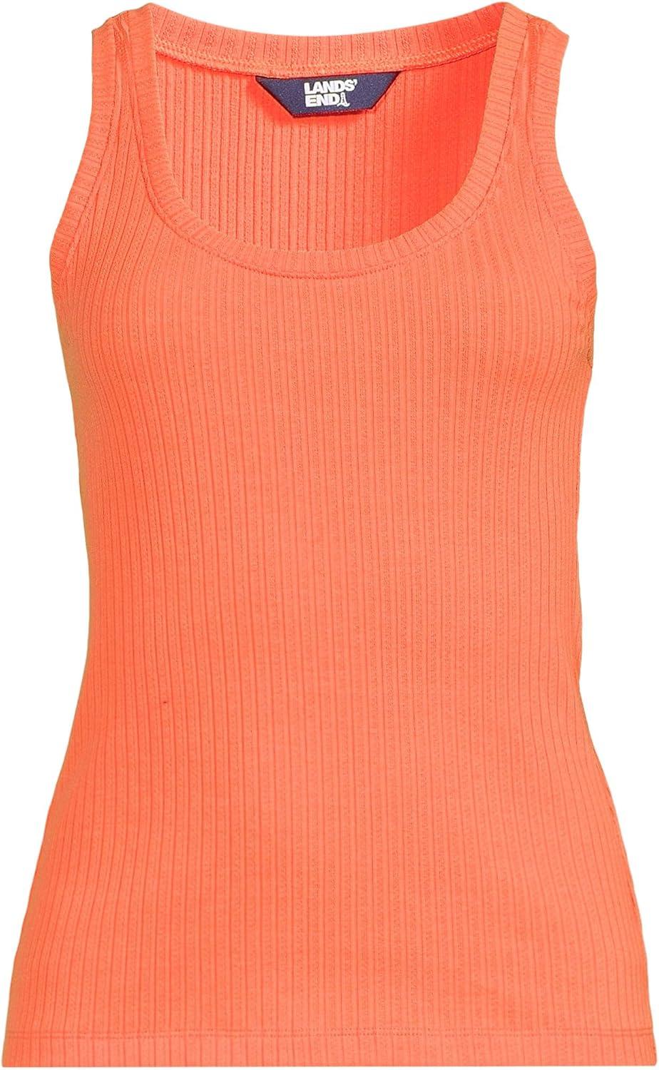 Lands’ End Women’s Pointelle Rib UNeck Tank(Papaya Orange)