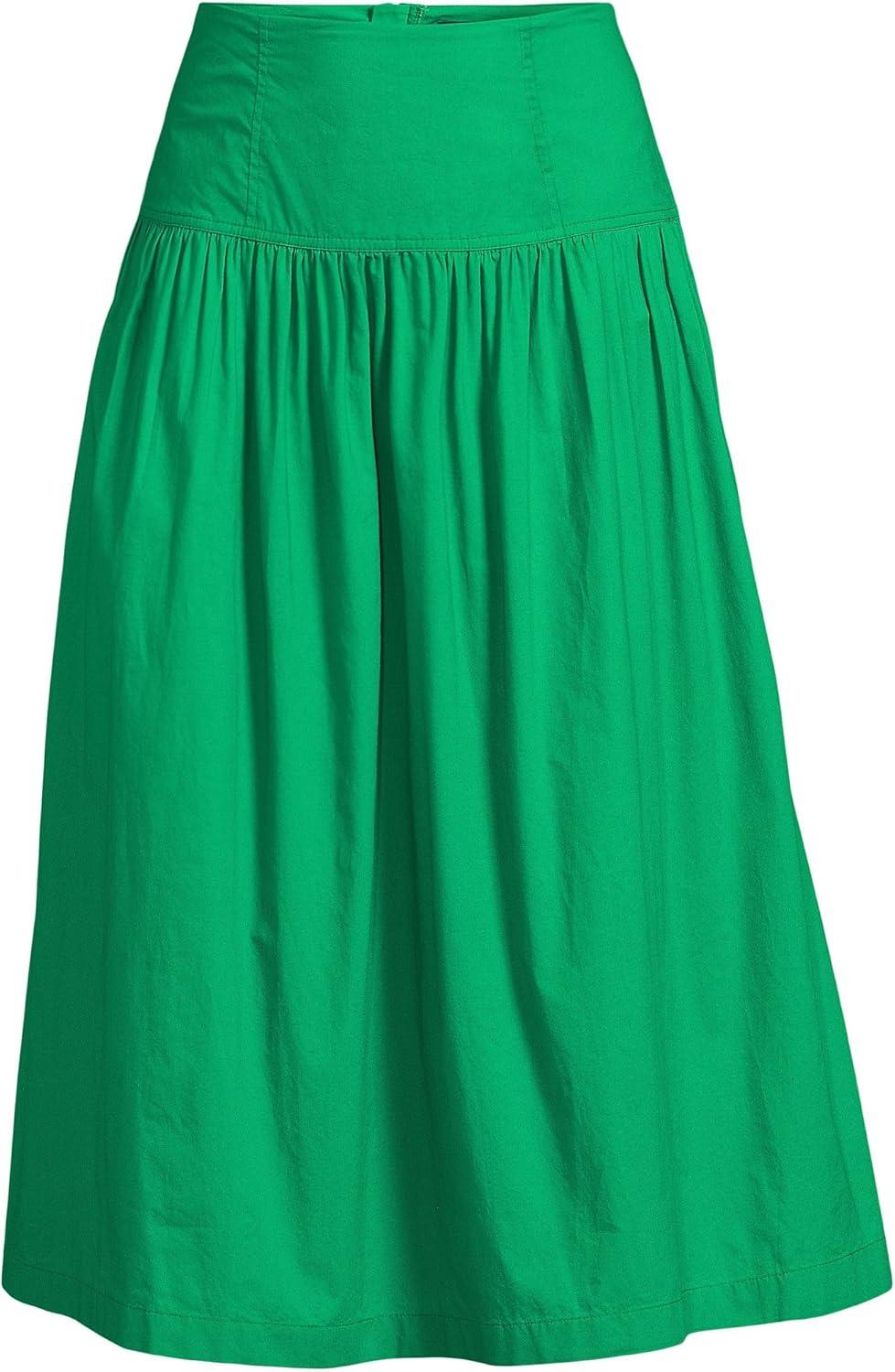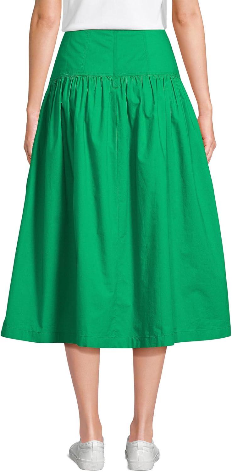 Lands’ End Women’s Poplin Drop Waist Midi Skirt(Vibrant Clover)
