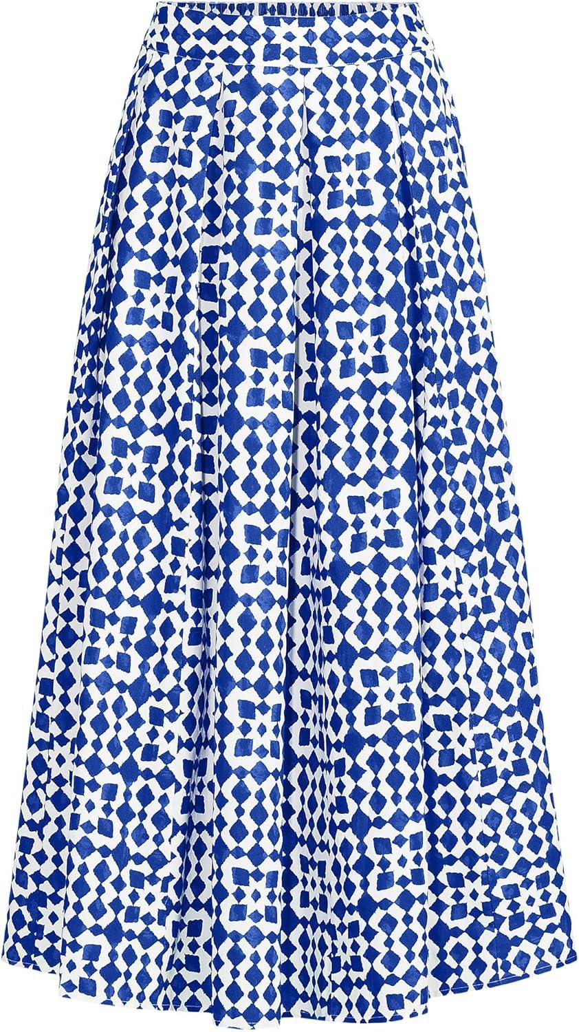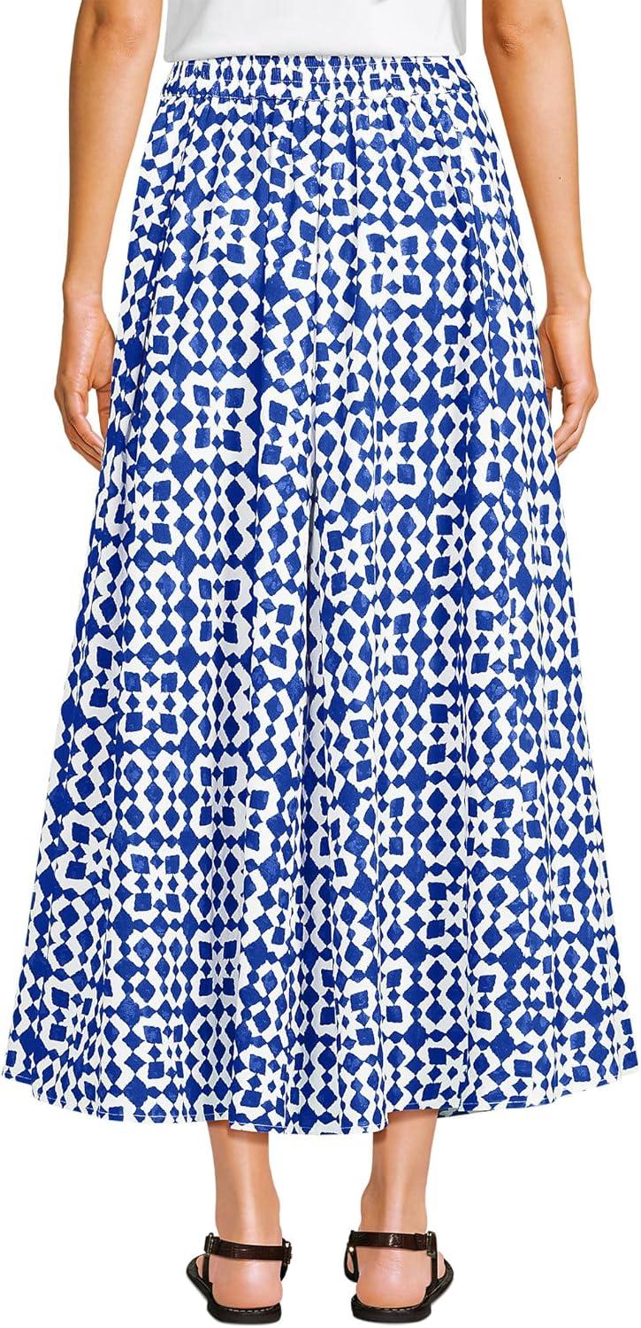 Lands’ End Women’s Poplin Godet Maxi Skirt(Blue Breeze Painted Geo)